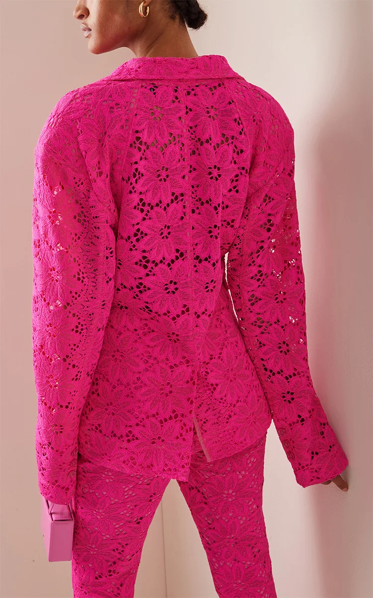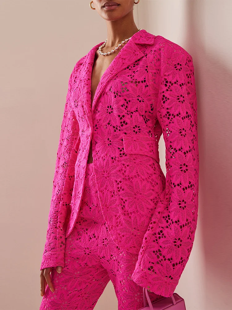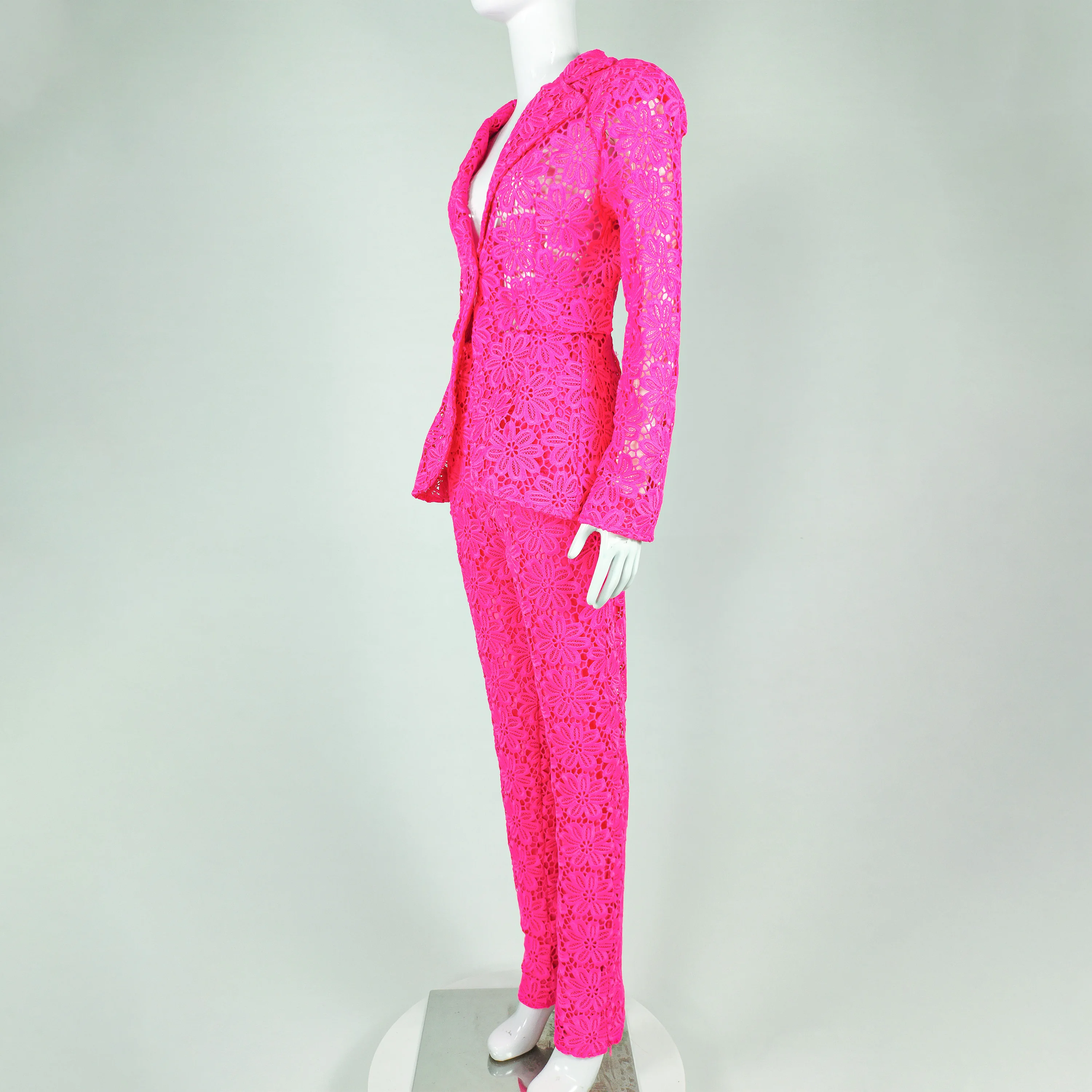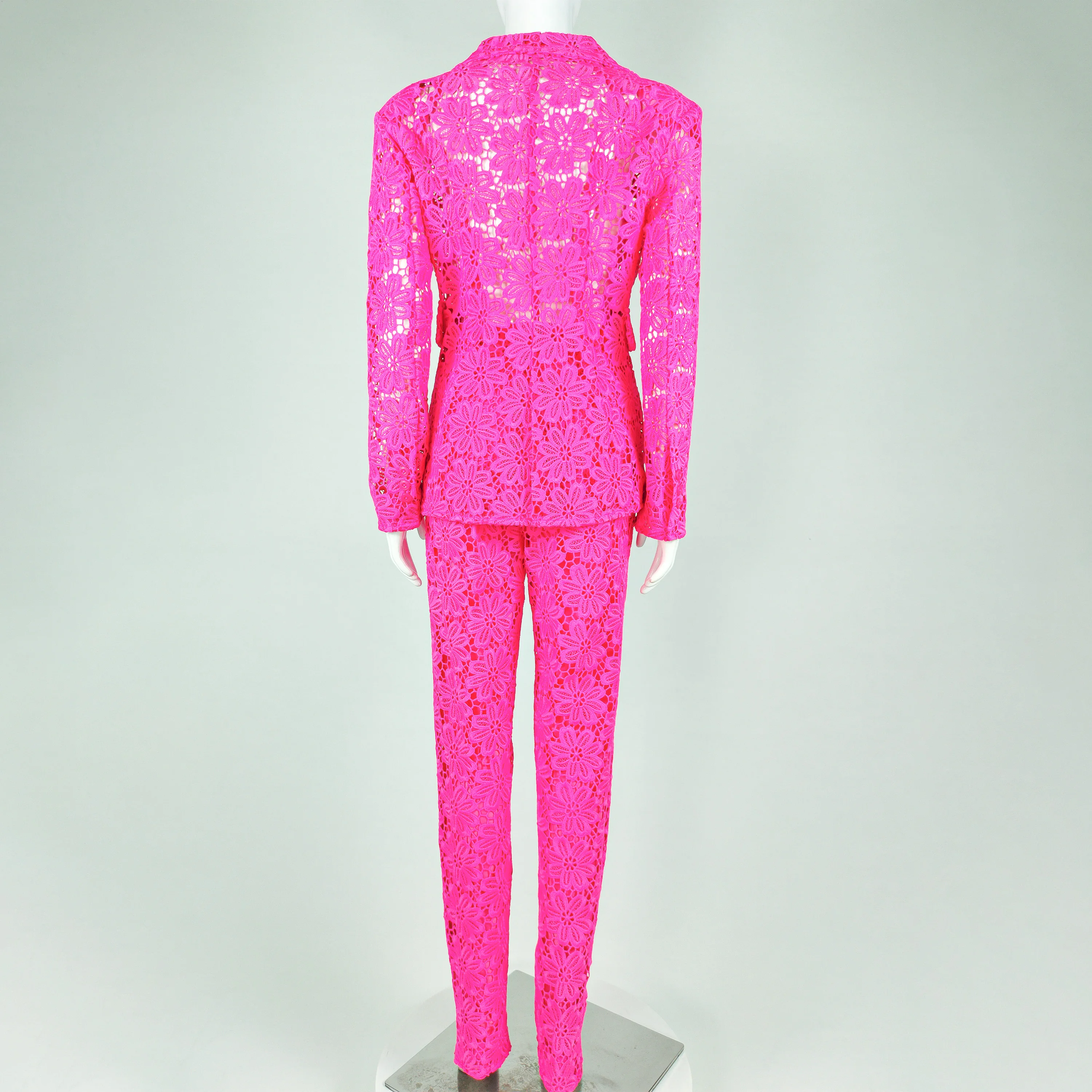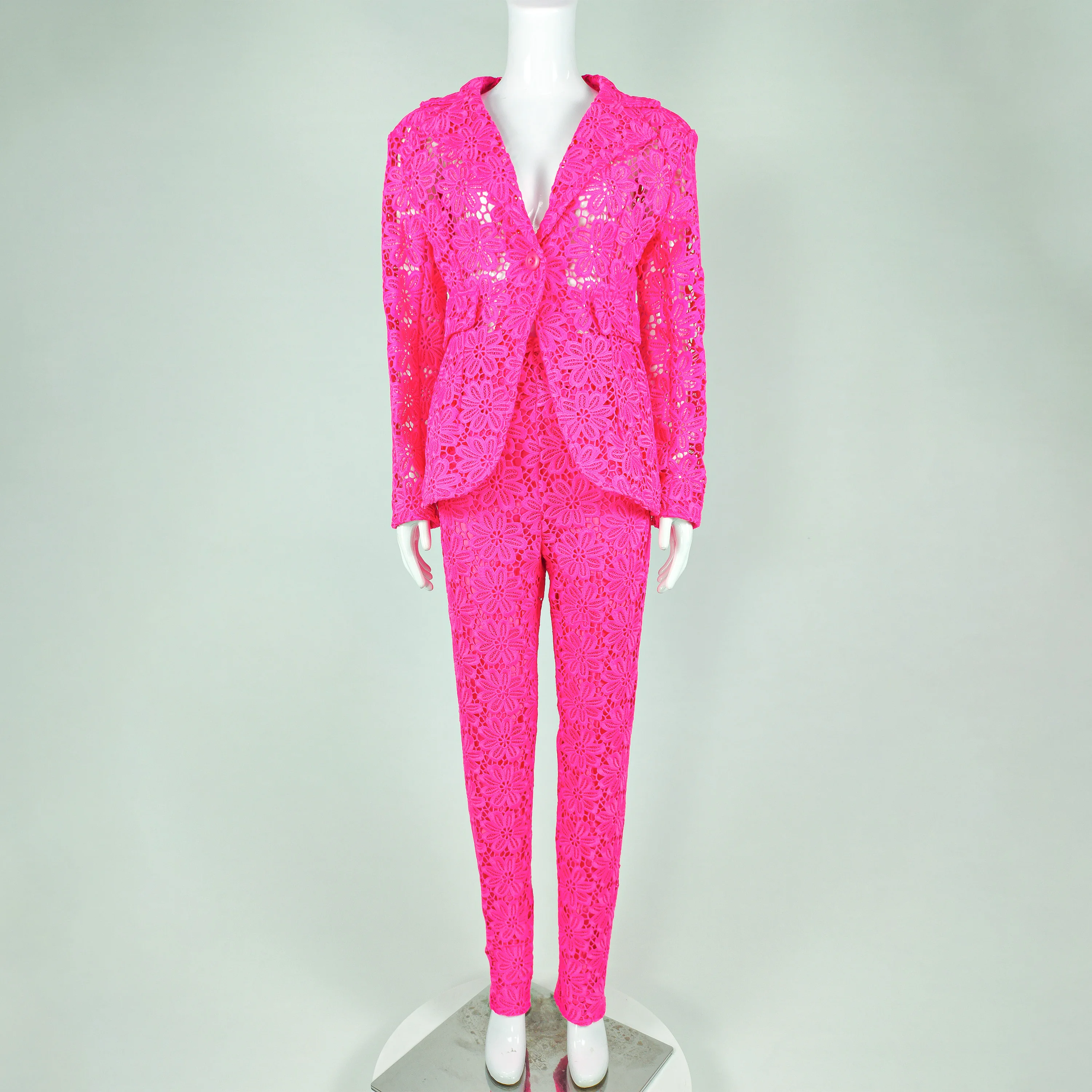 A7877 Fashionable women business suit fuchsia floral hollow-out blaze and long pant casual Women suits