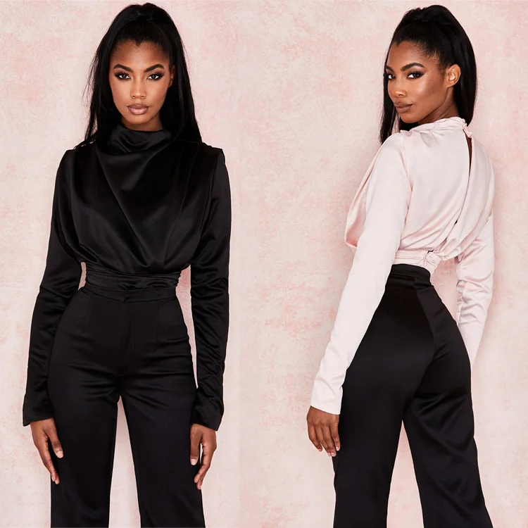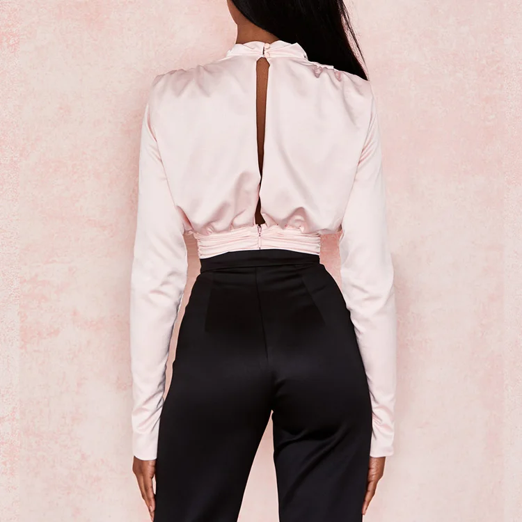 ADYABY New Arrivals Pink Colors Party Sexy Backless Long Sleeve Crop Tops T-shirts Women
