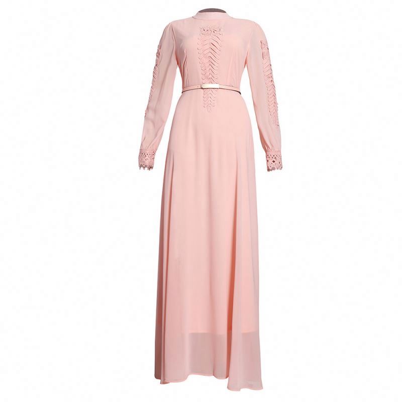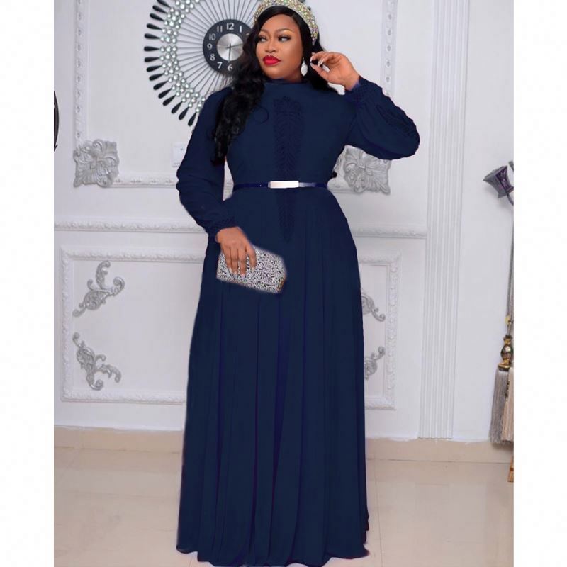 African Women Dress Africa Printed Style Dress Maiden Fashion Plus-size Long Solid Color Dress With Belt
