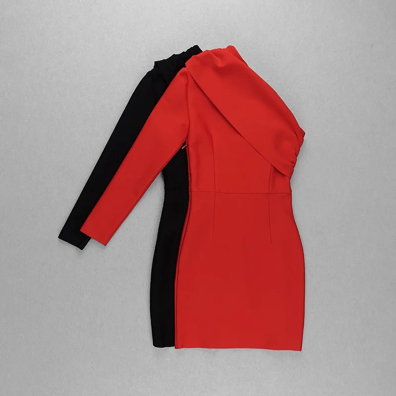 AH0103 Sexy One Shoulder Knitted Casual Women Dress Bandage Bodycon Dresses