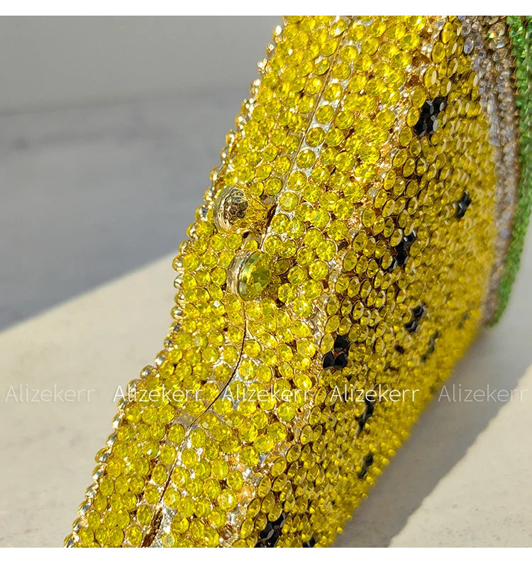 Alizekerr Pizza Shaped Diamond Evening Clutch Bags 2024 New Gorgeous Unique Metallic Watermelon Rhinestone Purses Wedding Party