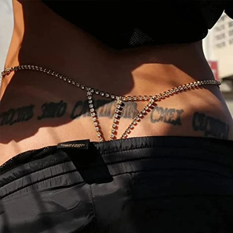 Am Hot Selling Rhinestone Body Chain Underwear Women's Party Holiday Sexy Simple Jewelry Bikini Thong Accessories
