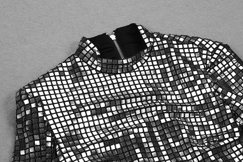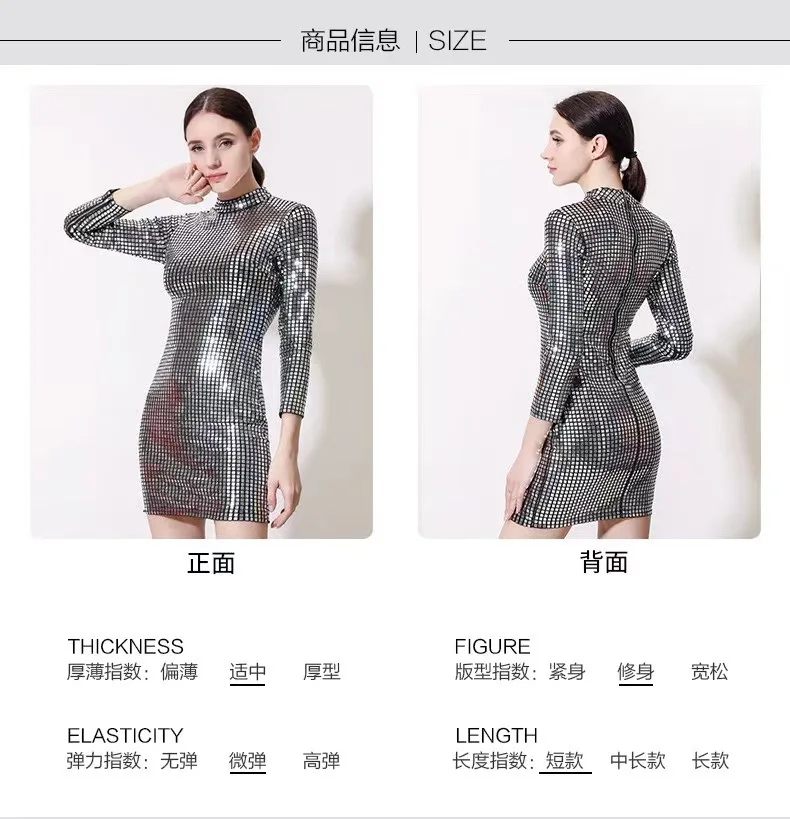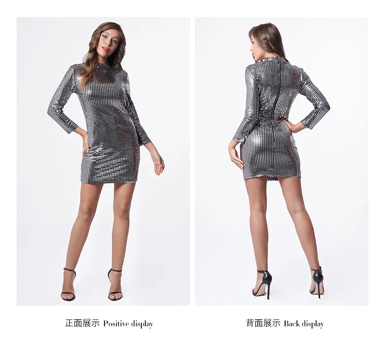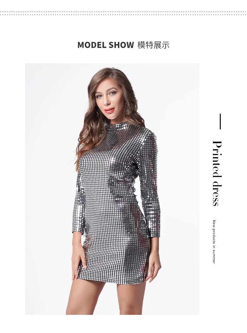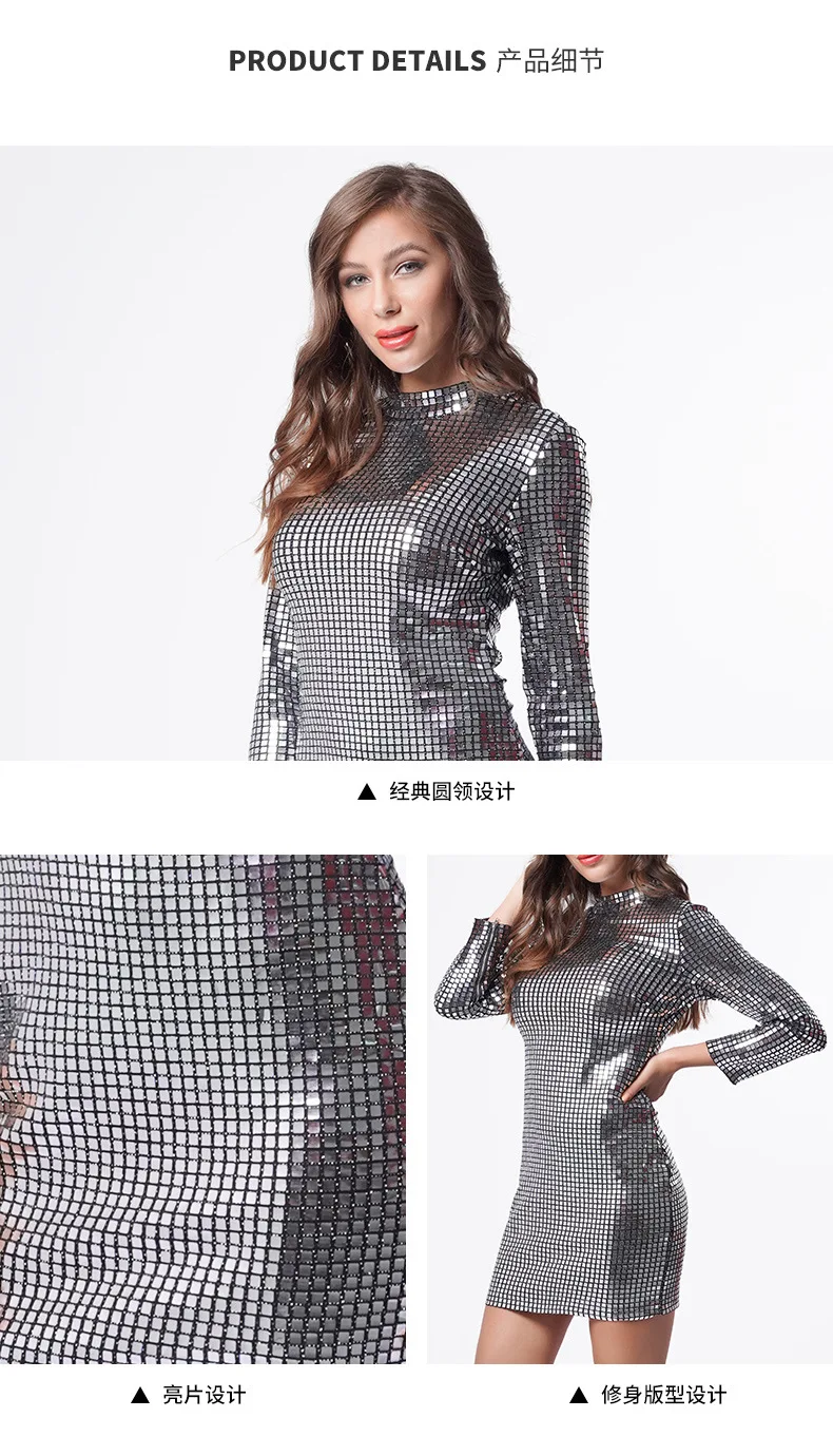 Amazon hot sale women's silver dress Sequins long-sleeved bag hip nightclub dress Sequined sexy party dress