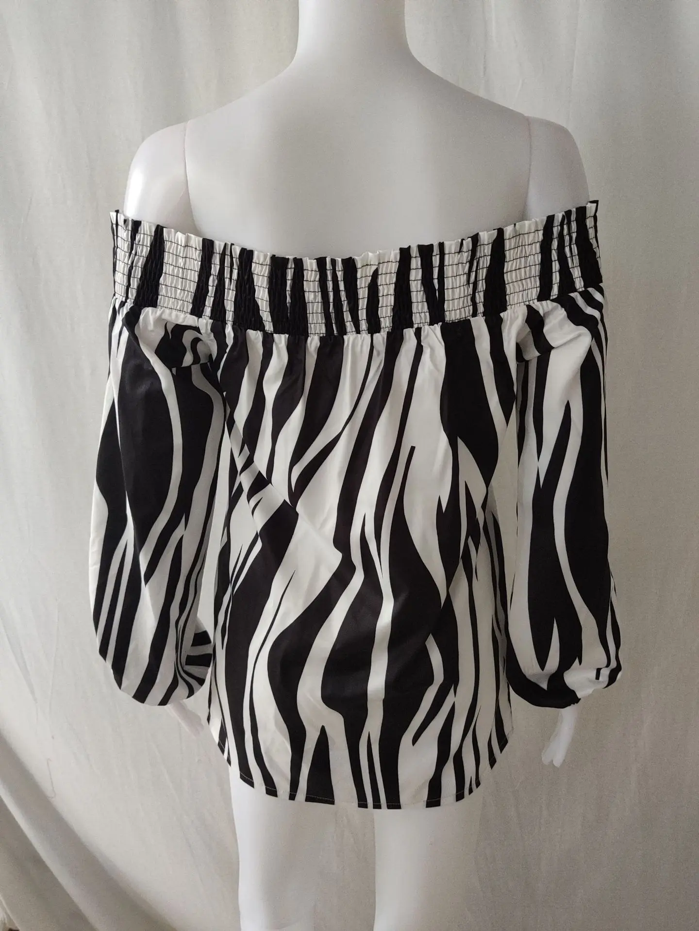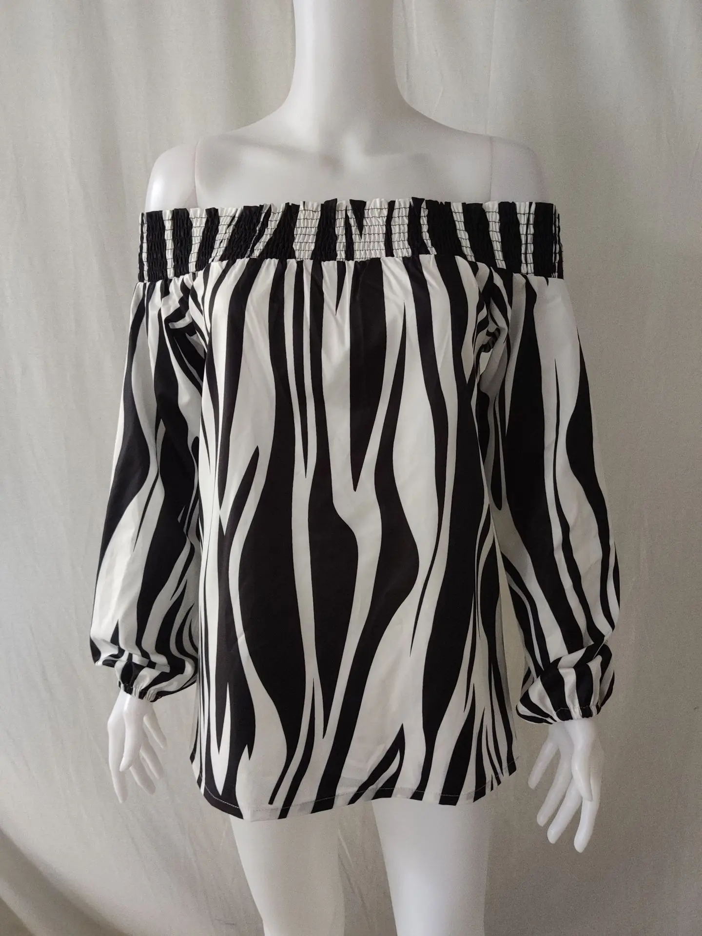 Amazon hot summer autumn new European American striped sexy off-shoulder chiffon shirt