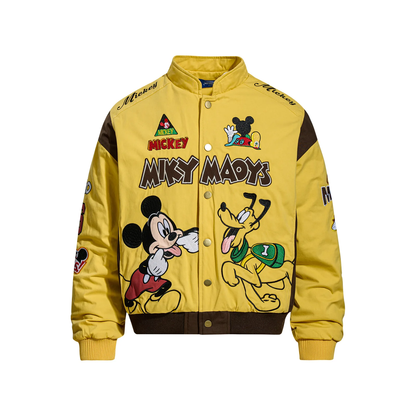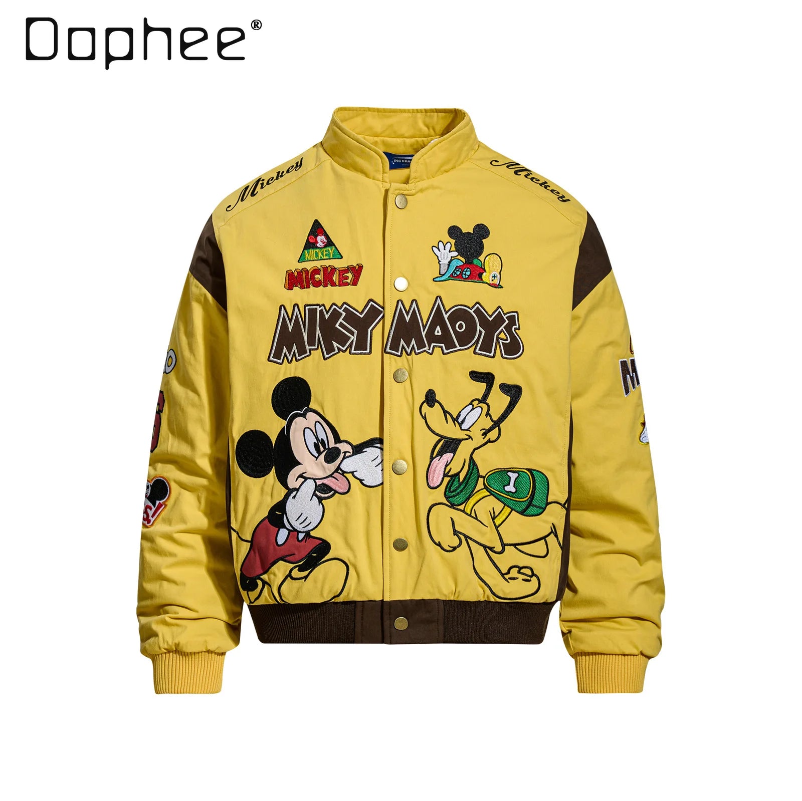 American Retro Cartoon Embroidery Patchwork Stand Collar Thickened Jacket for Men and Women Winter Loose Casual Warm Cotton Coat