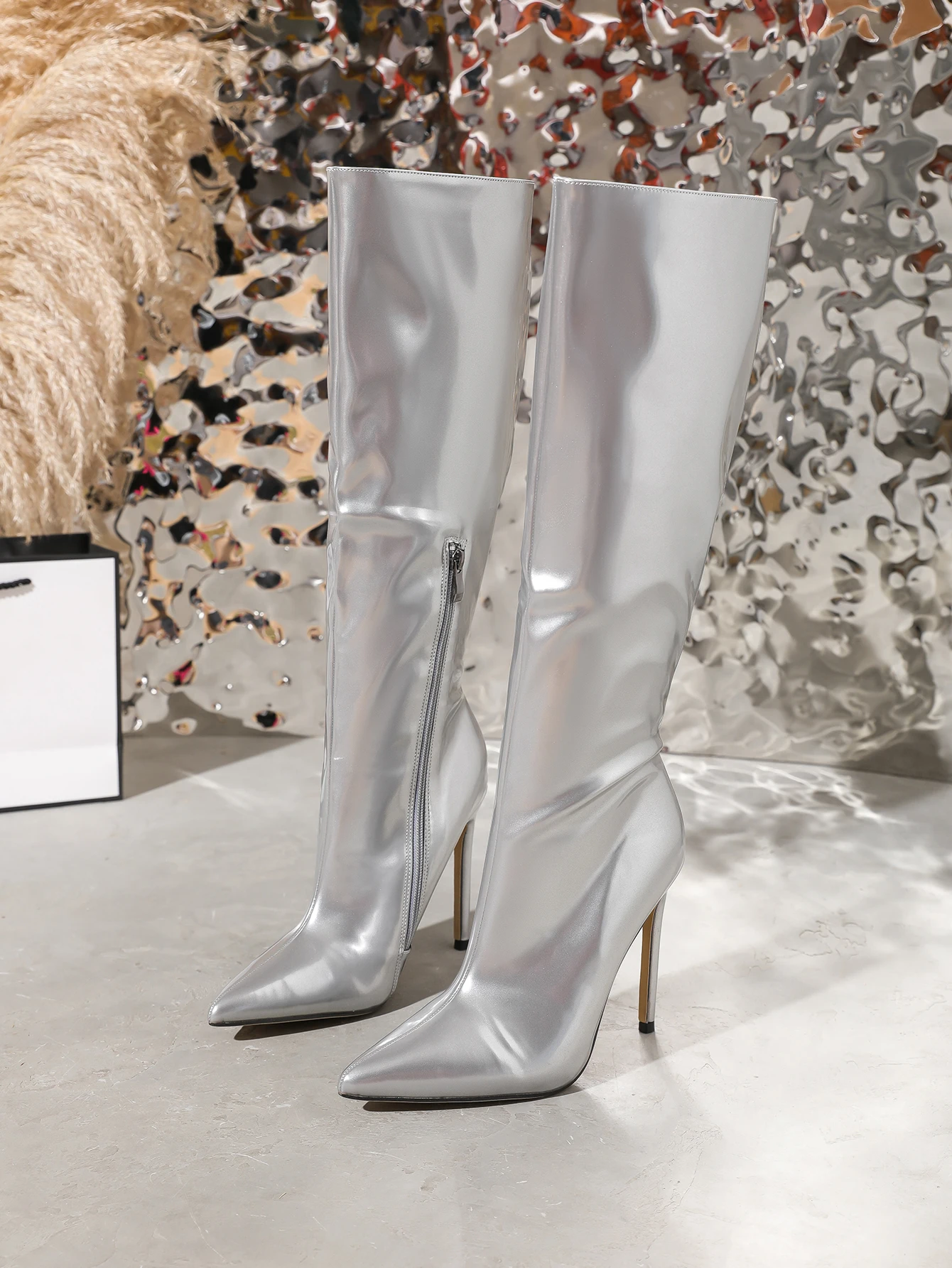 Aneikeh 36-42 Party Ball Women Checkered Fashion Sexy PU Snake Skin Pattern Mid-Calf Modern Boots 2024 Pointed Thin Heels Boots