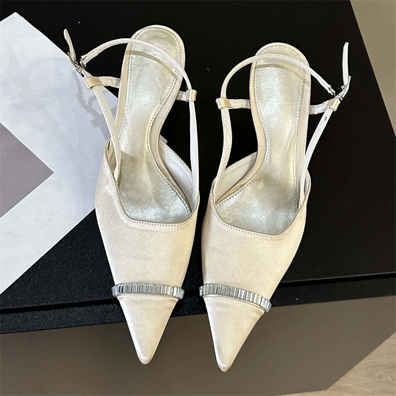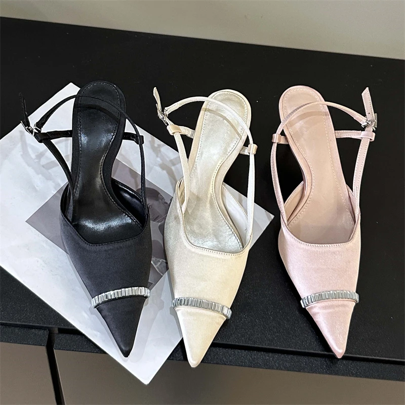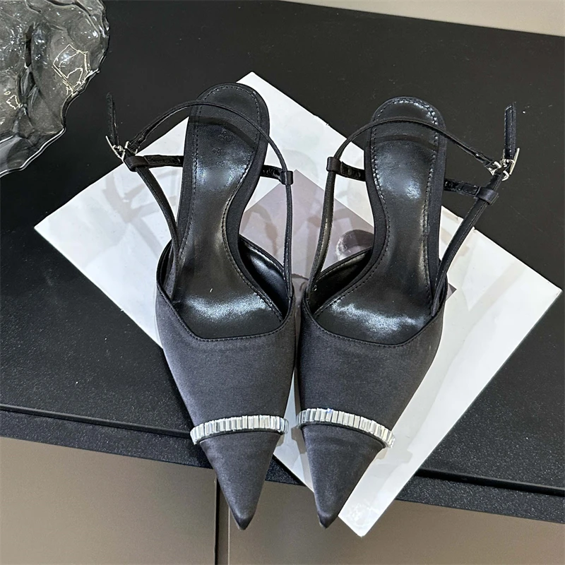 Aneikeh Fashion Black Bling Sewing Office & Career Women Shallow Pointed Toe Retro Slip-On Sandals Pumps NEW Summer Lady Shoes