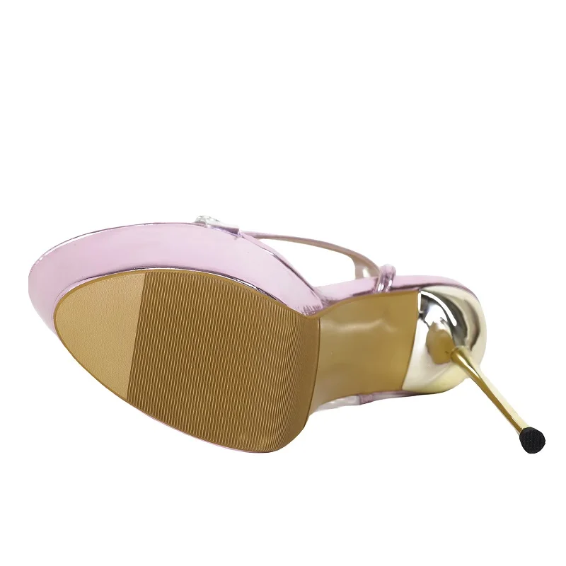 Aneikehr Buckle Round Toe Peep Toe PVC Women Shoes Rome Platform Crystal Diamond Bling Fashion 16CM Stiletto Sandals For Women