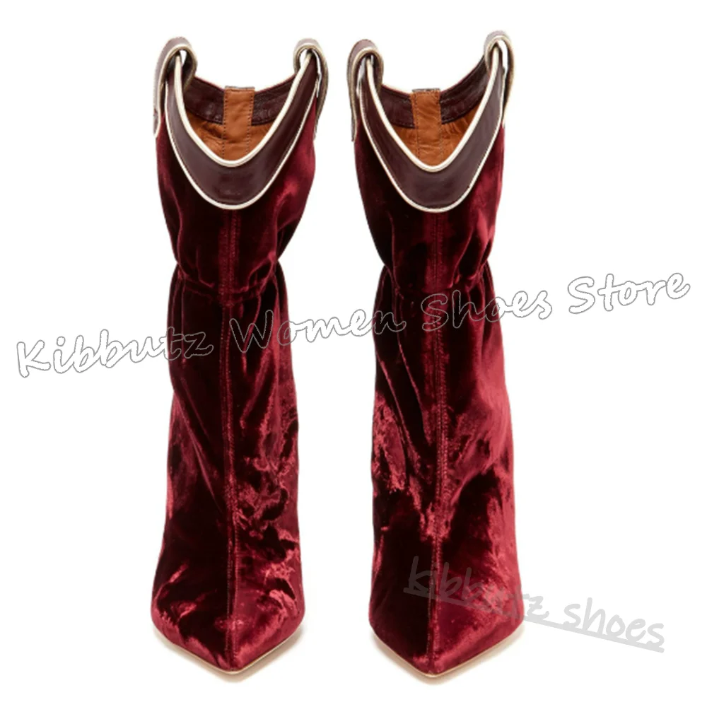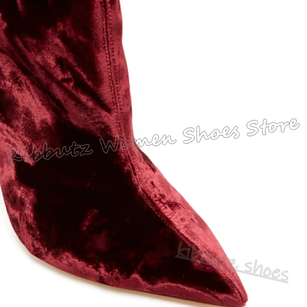 Ankle Modern Boots Velvet Solid Color Pleated Fashion Elegant Comfortable Sexy Luxury Women Shoes New Pointy Thin Heels Slip-On