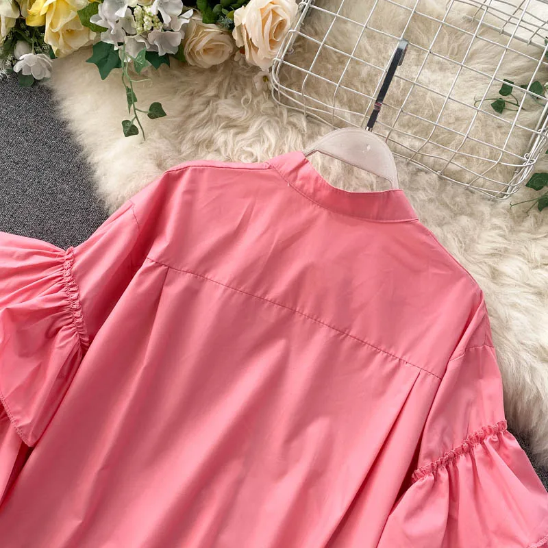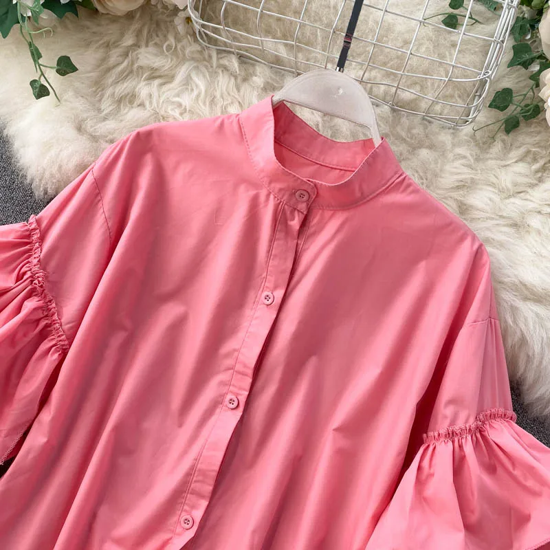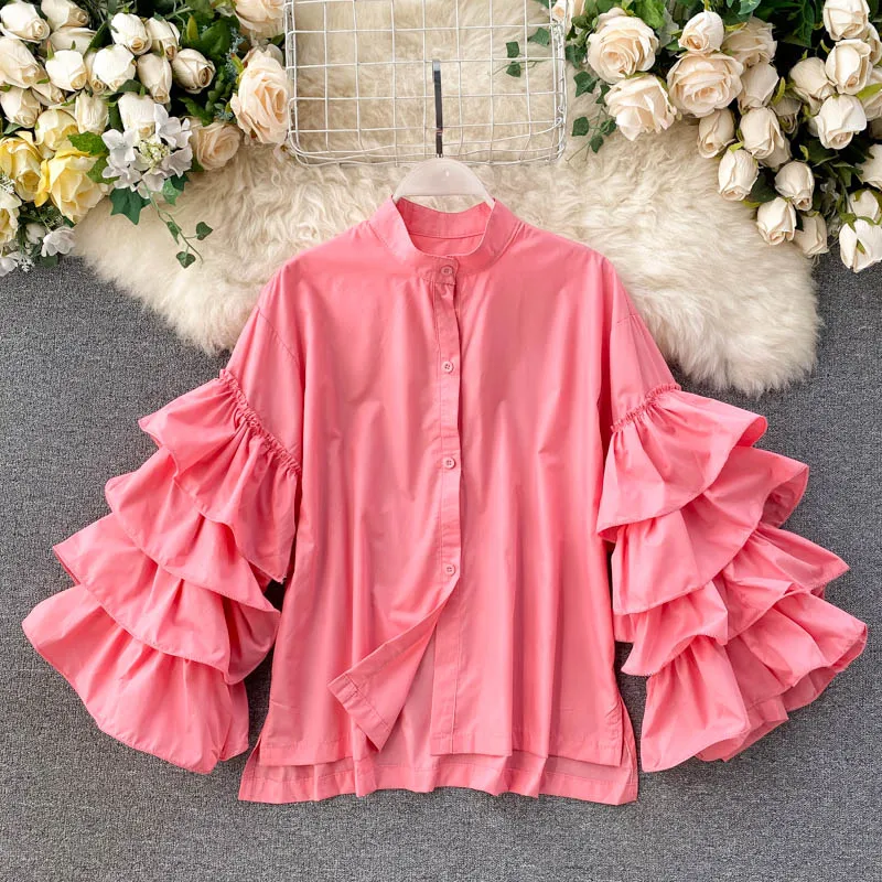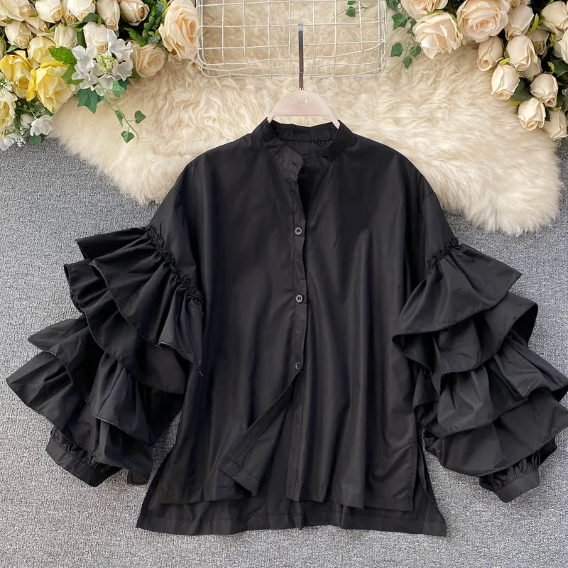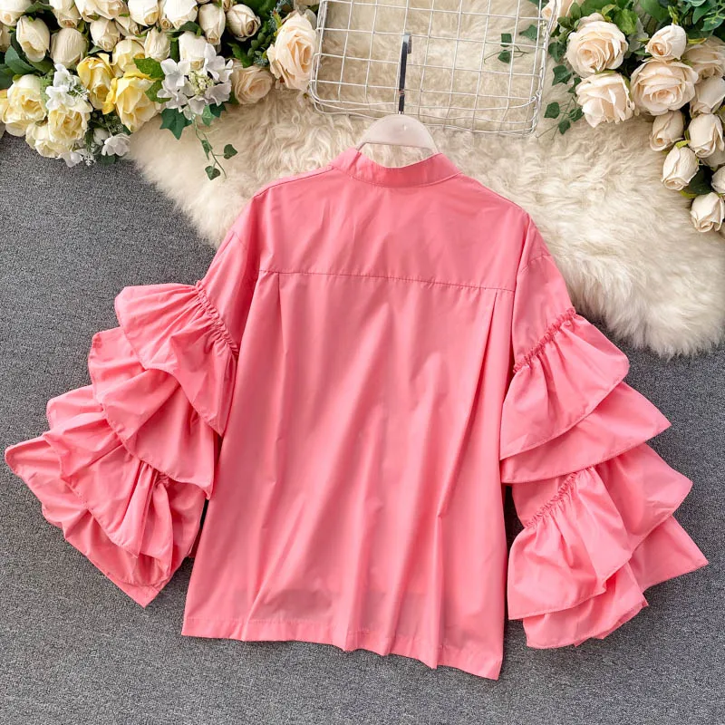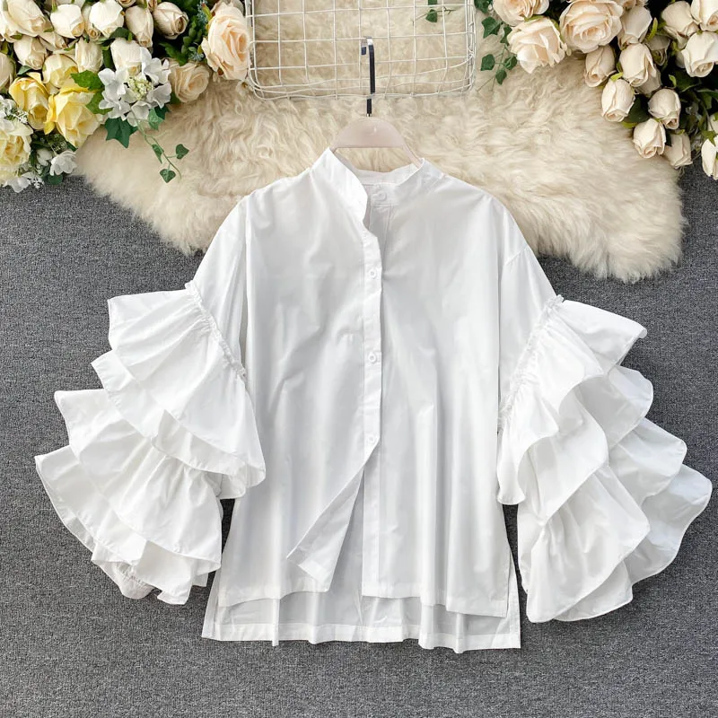 ANSZKTN Spring Summer Flared Sleeve Loose Woman Ruffle Tops ANSZKTNable Women'S Blouses & Shirts