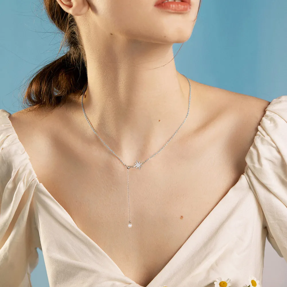 APN27-14K Dainty Long Necklace 14k Gold Plated/Silver Y-Shaped Pendant Necklace Drop Necklaces Gold Jewelry For Women Girls Gift