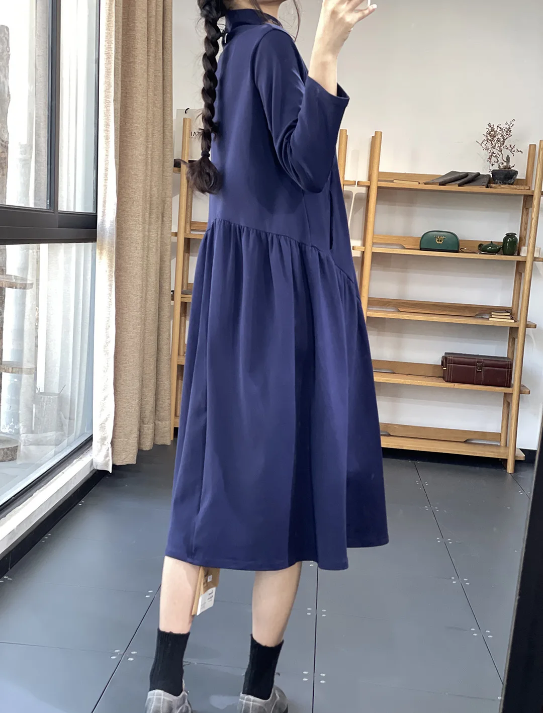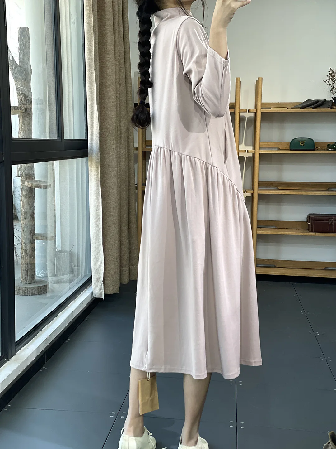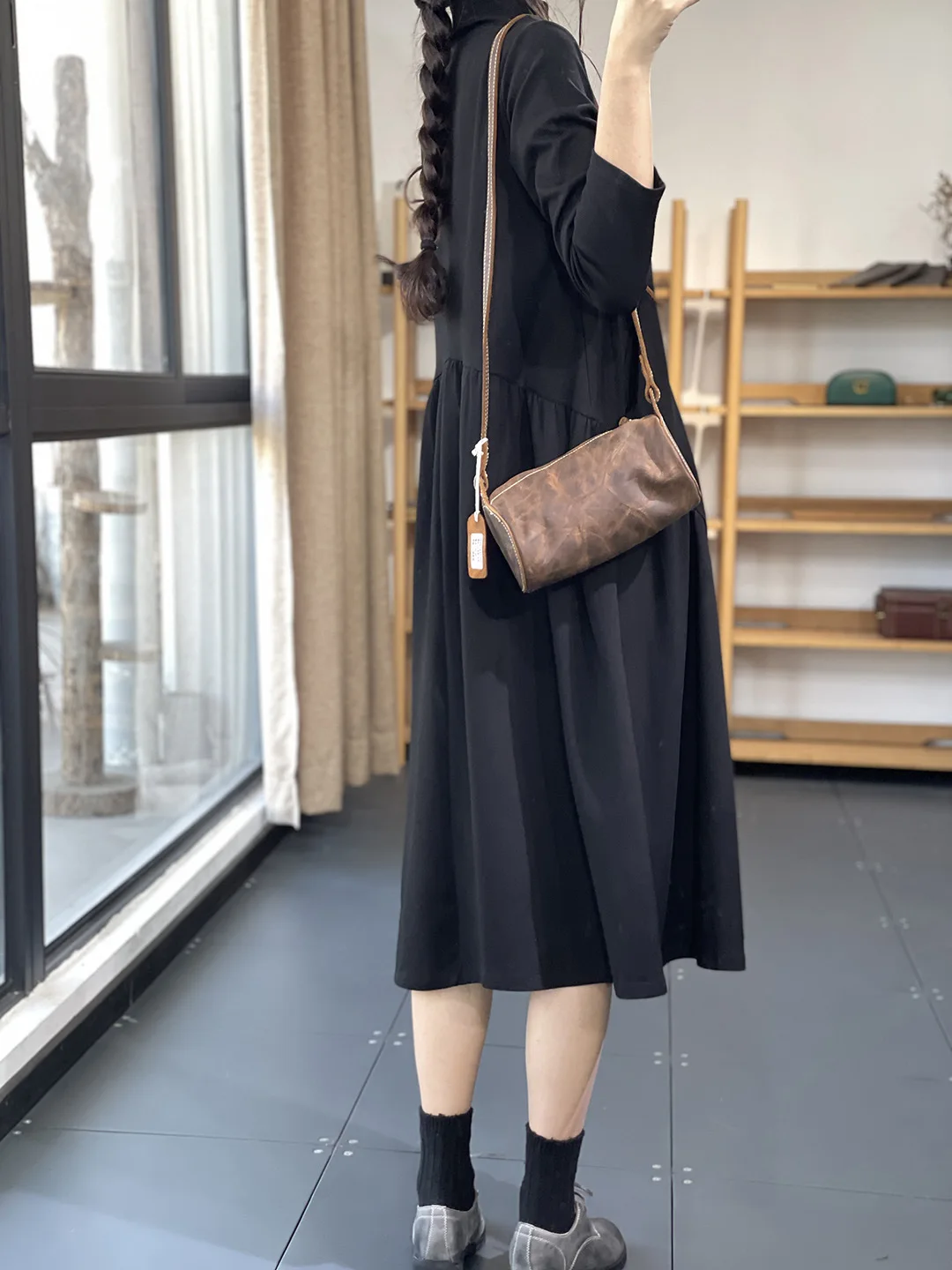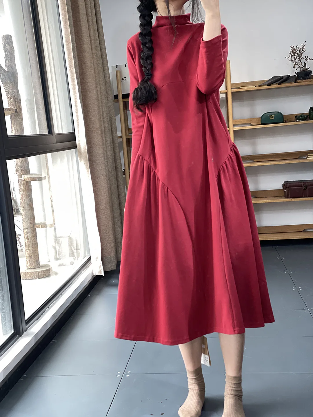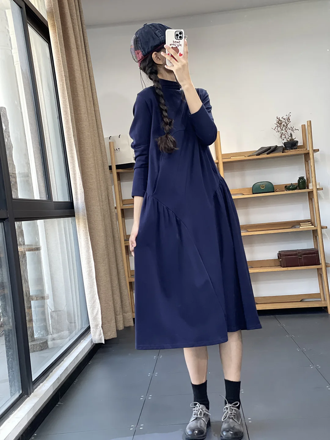 Artistic Loose Cos Style Dress Stitching Ruffle Half Turtleneck Solid Color Knitted T-shirt Dress 2022 Autumn New Women's