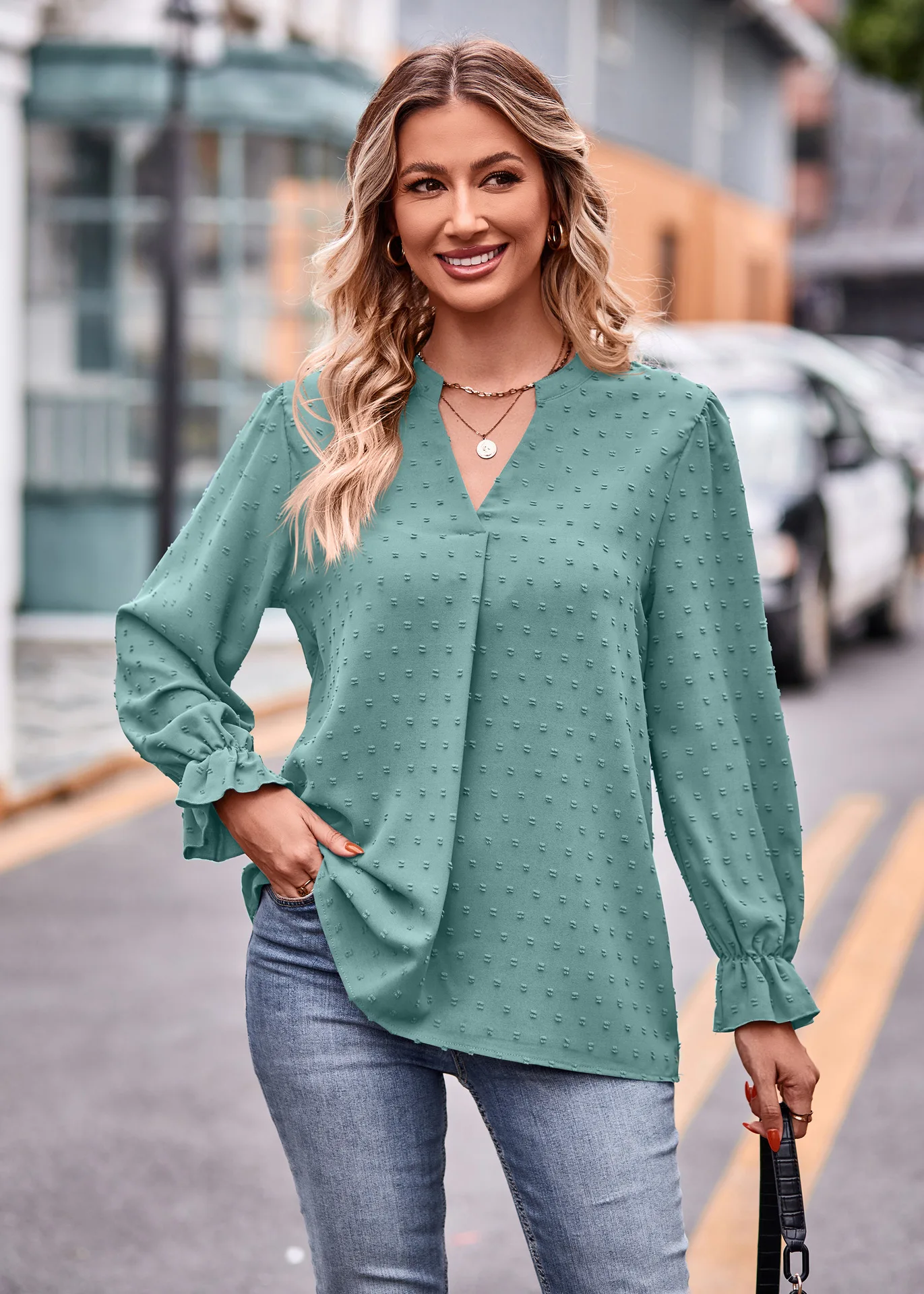 Autumn 2023 New European and American Women's Jacquard T-shirt V-neck Loose Long Sleeve Umbrella Sleeve top