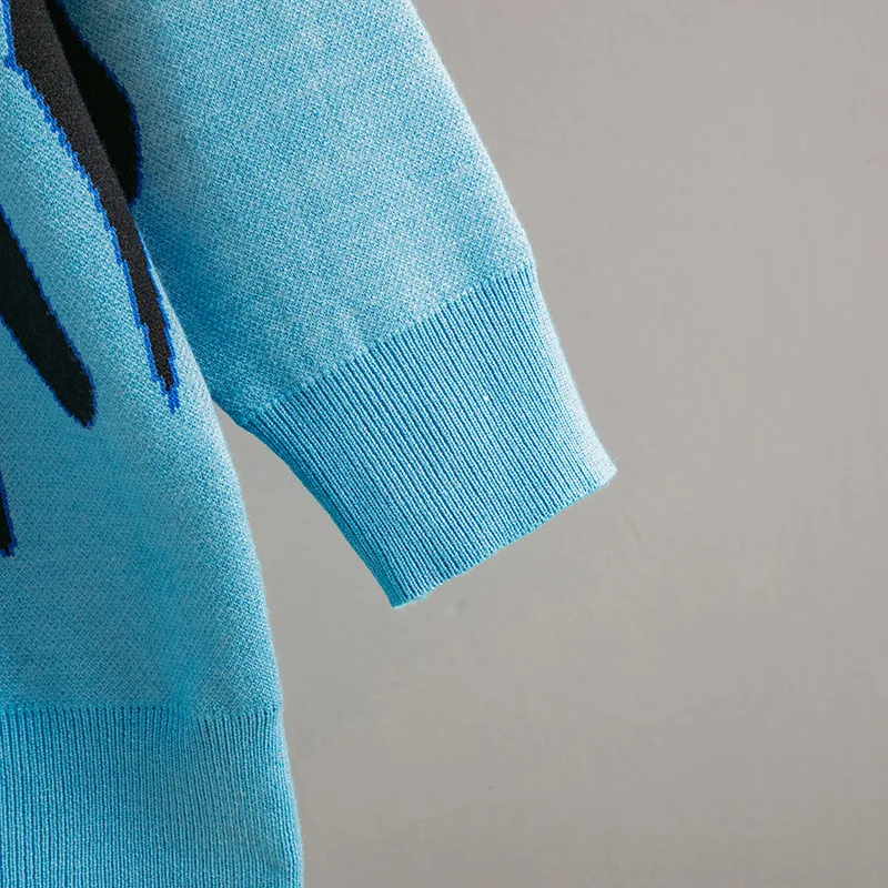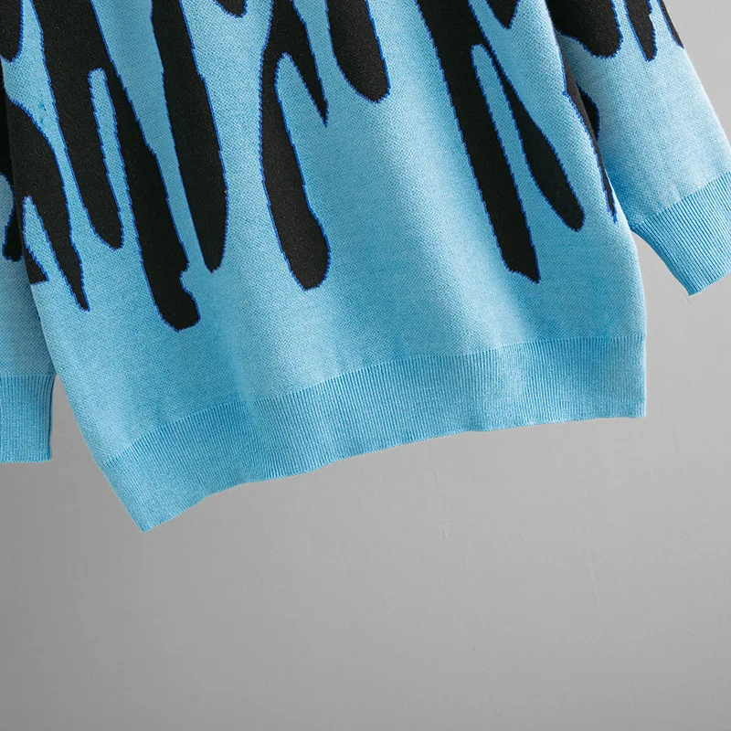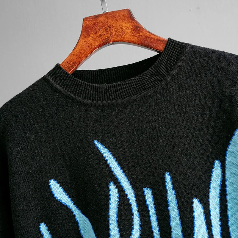 Autumn And Winter Round Neck Retro Black Printing Flame European And American Pullover Large Size Thin Knitted Women's Sweater