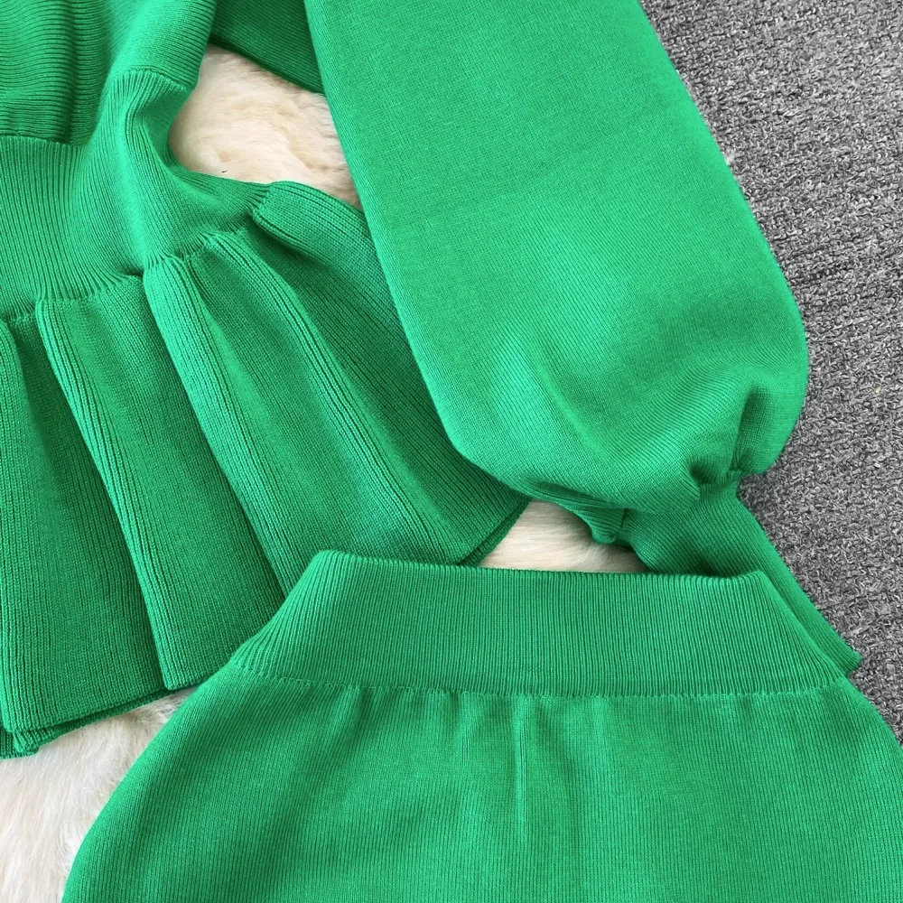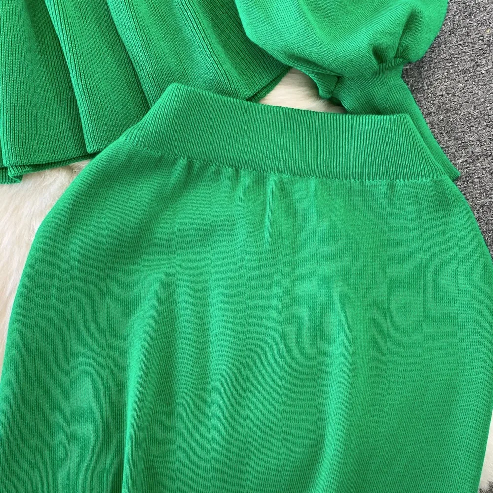 Autumn And Winter Vintage Fashion Round Neck Slim Tops Half Skirt Y2K Knitted 2 Piece Women Two Piece Set