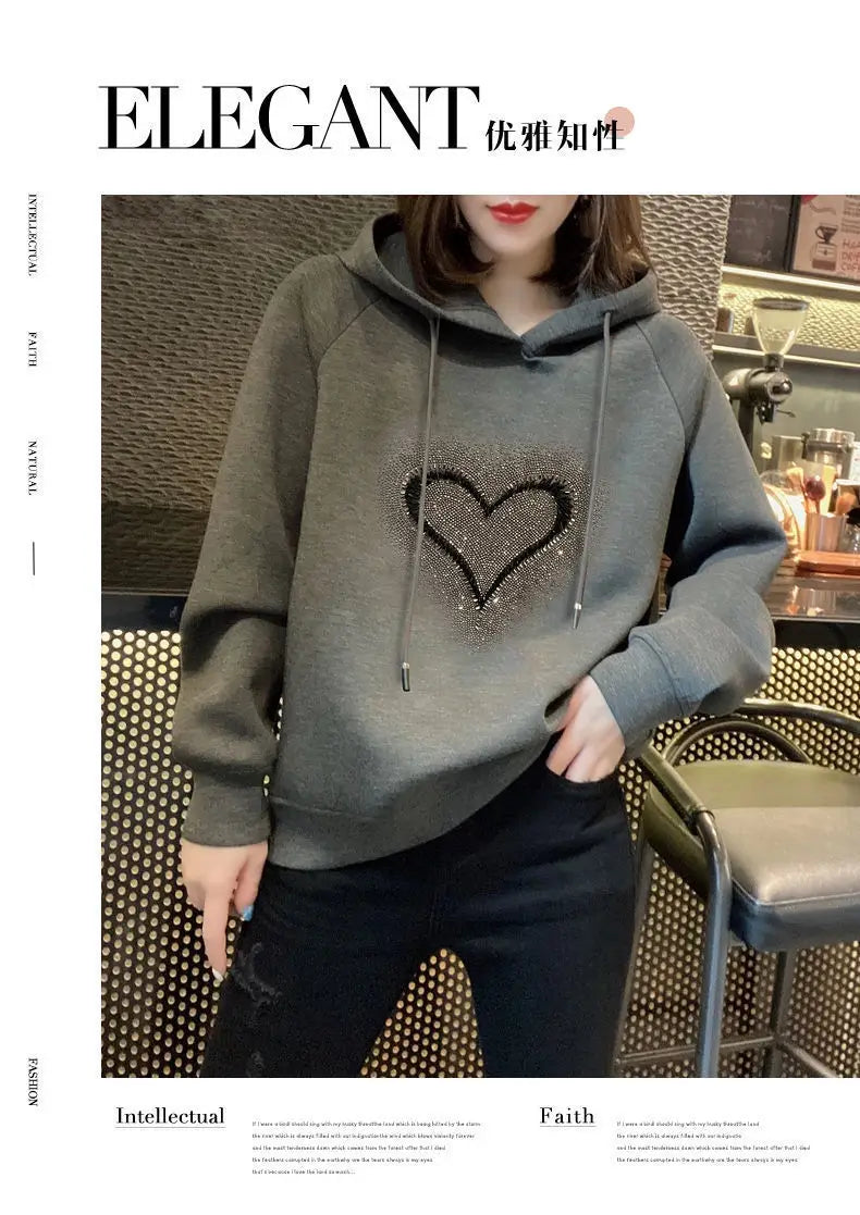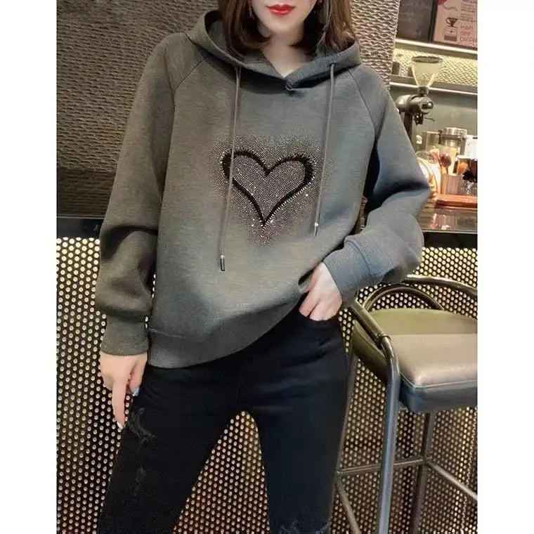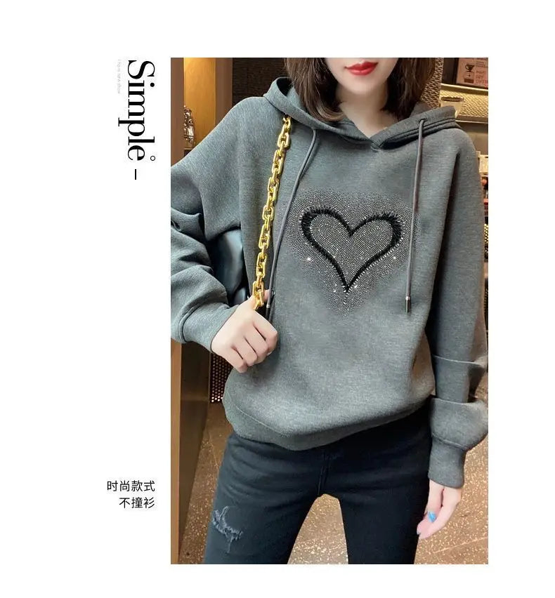 Autumn and Winter Women's Hoodie Sweater fleece-lined Thickened Korean-style Loose Casual All-match Top