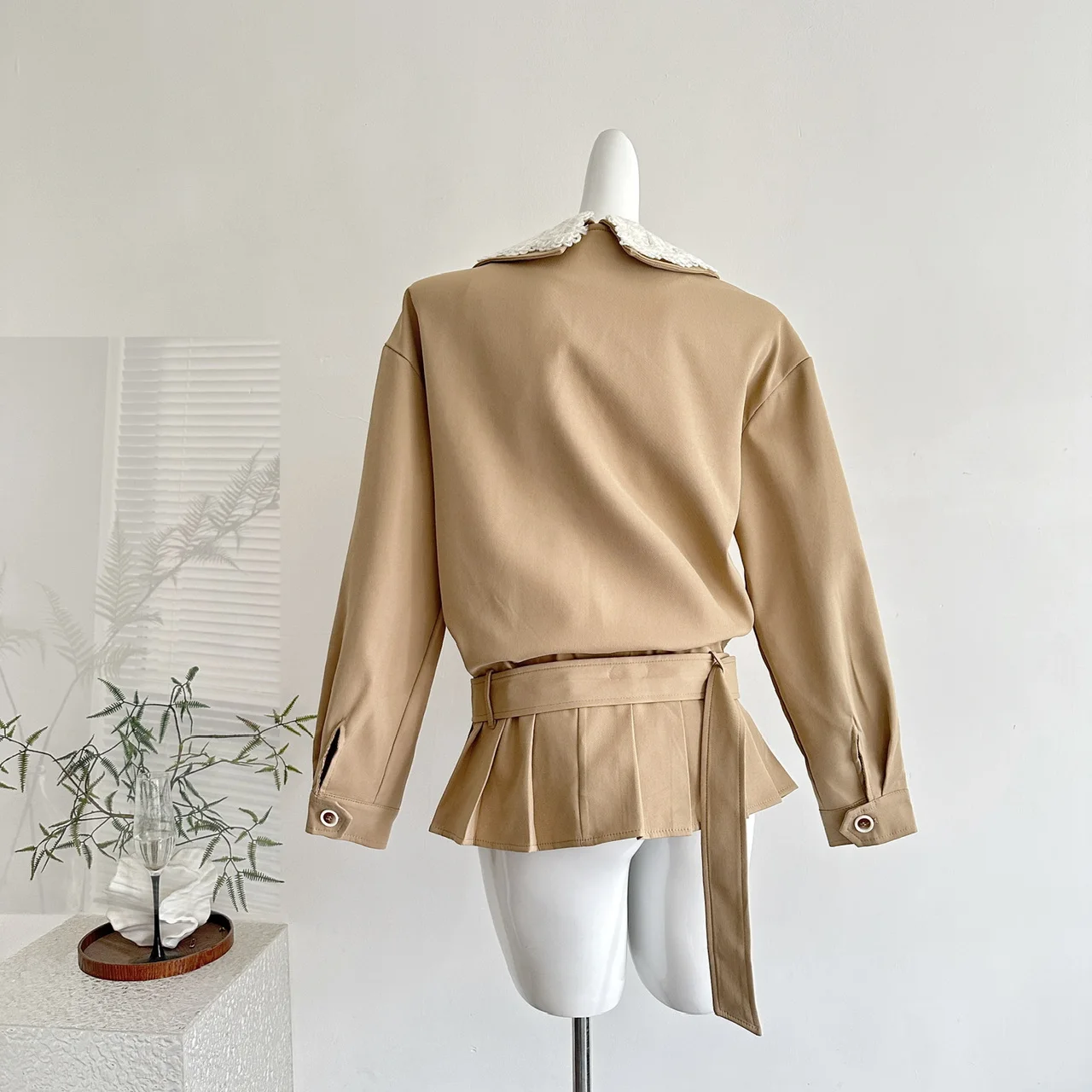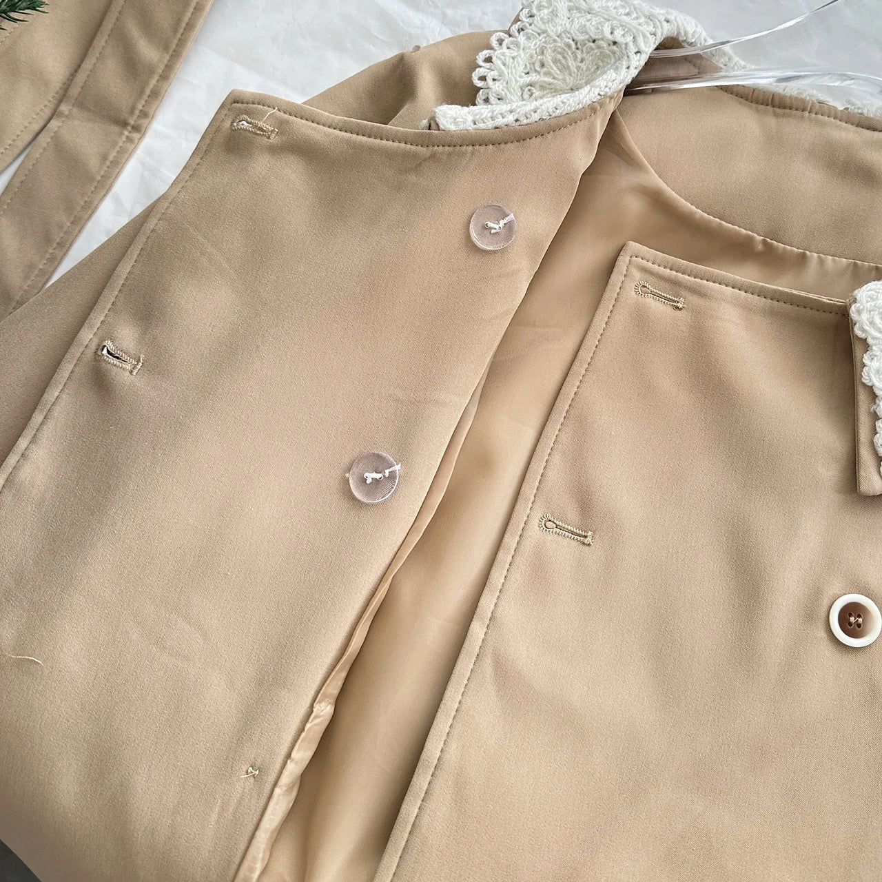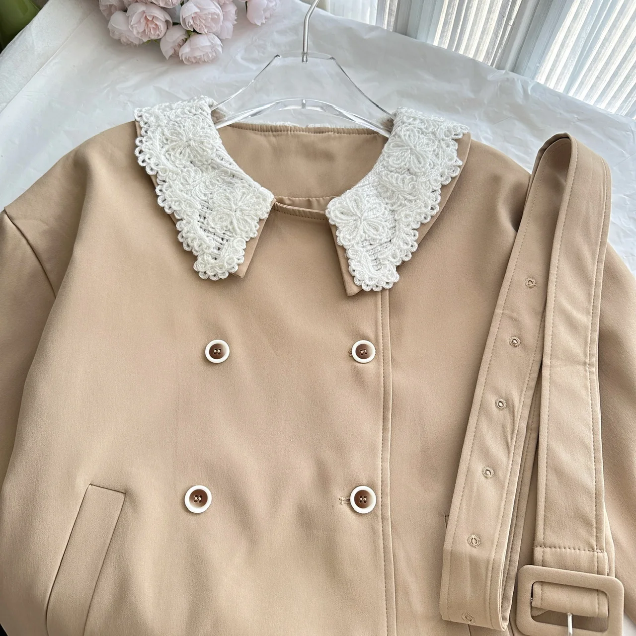 Autumn Chic French Elegant Lace Doll Collar Design Jacket 2000s Aesthetic Korean Popular Retro Women's Trench Coat Woman Clothes