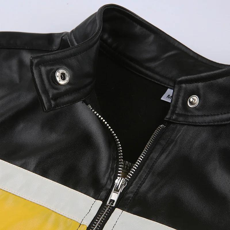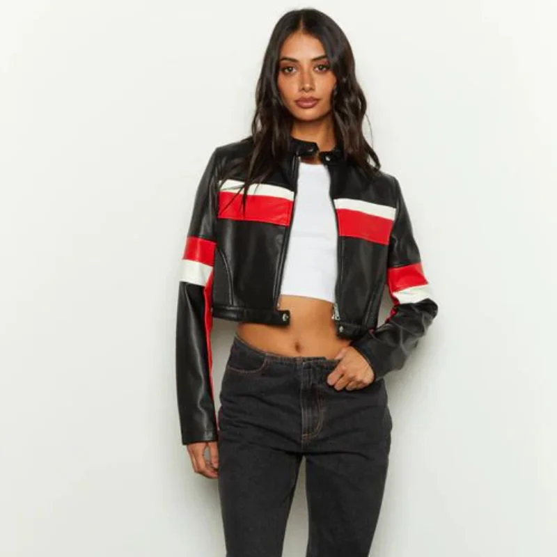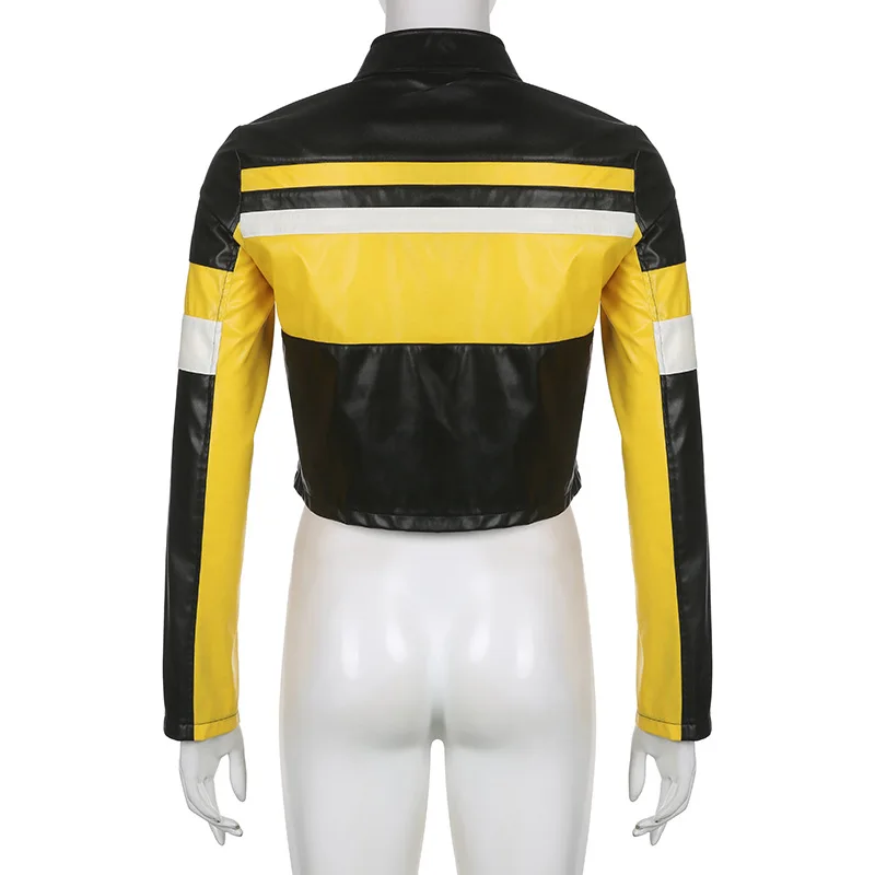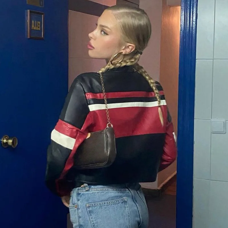 Autumn Fashion Contrast Color Zipper Long Sleeve Short Coat 2023 Motorcycle Style Jacket Women New Women's PU Jacket