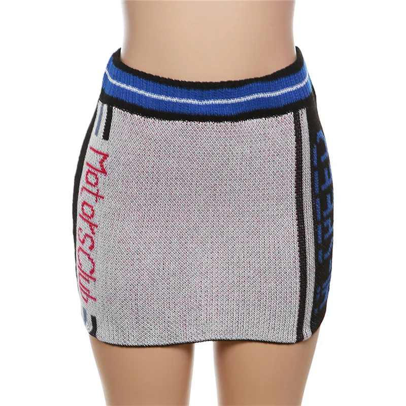Autumn New Design Zipper O Neck Top And Mini Skirts Women Fashion Streetwear 2 Piece Knitted Outfits Skirt Set