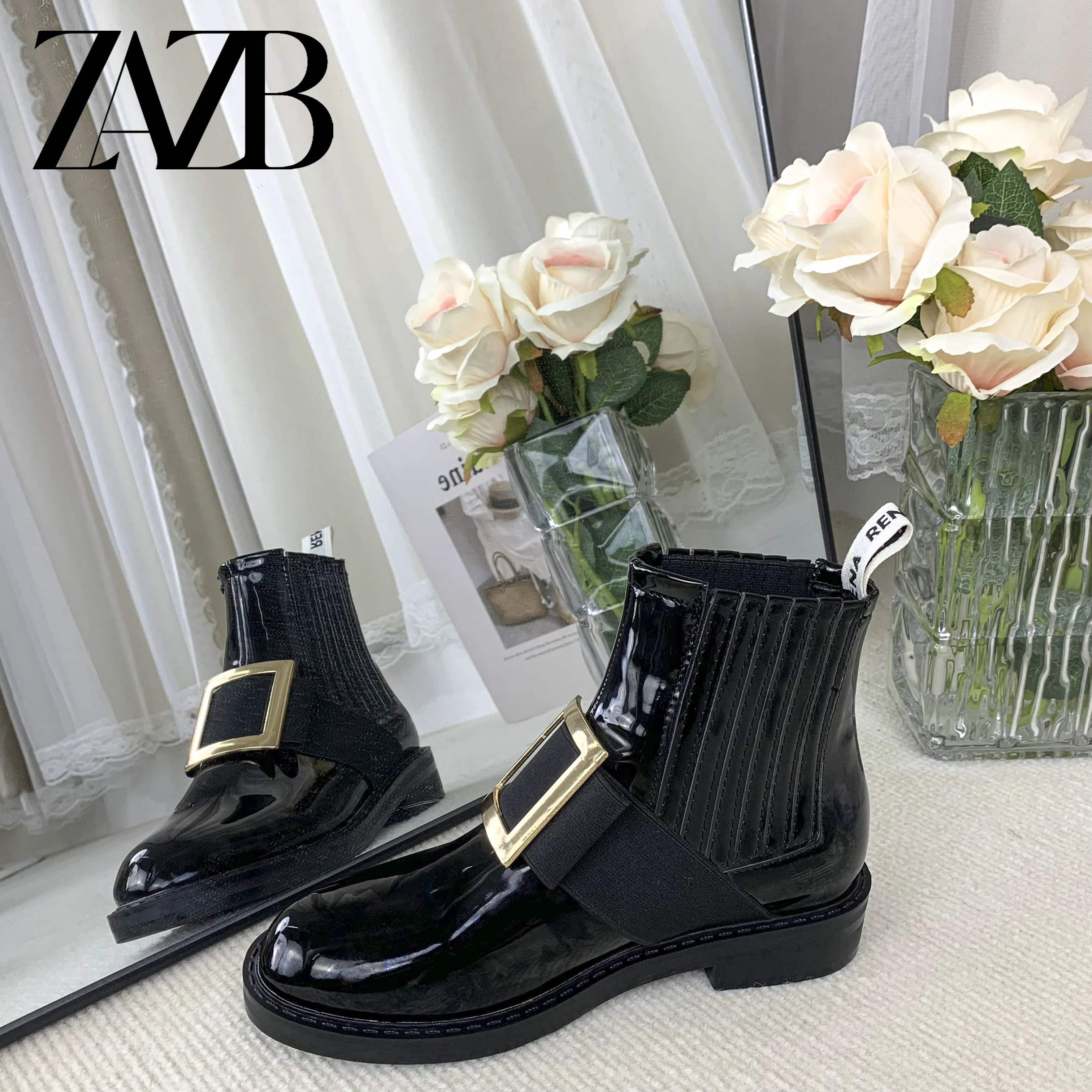 Autumn New Metal Button Women's Shoes Apricot Thick Sole High Waist Elastic Bare Boots Short Boots