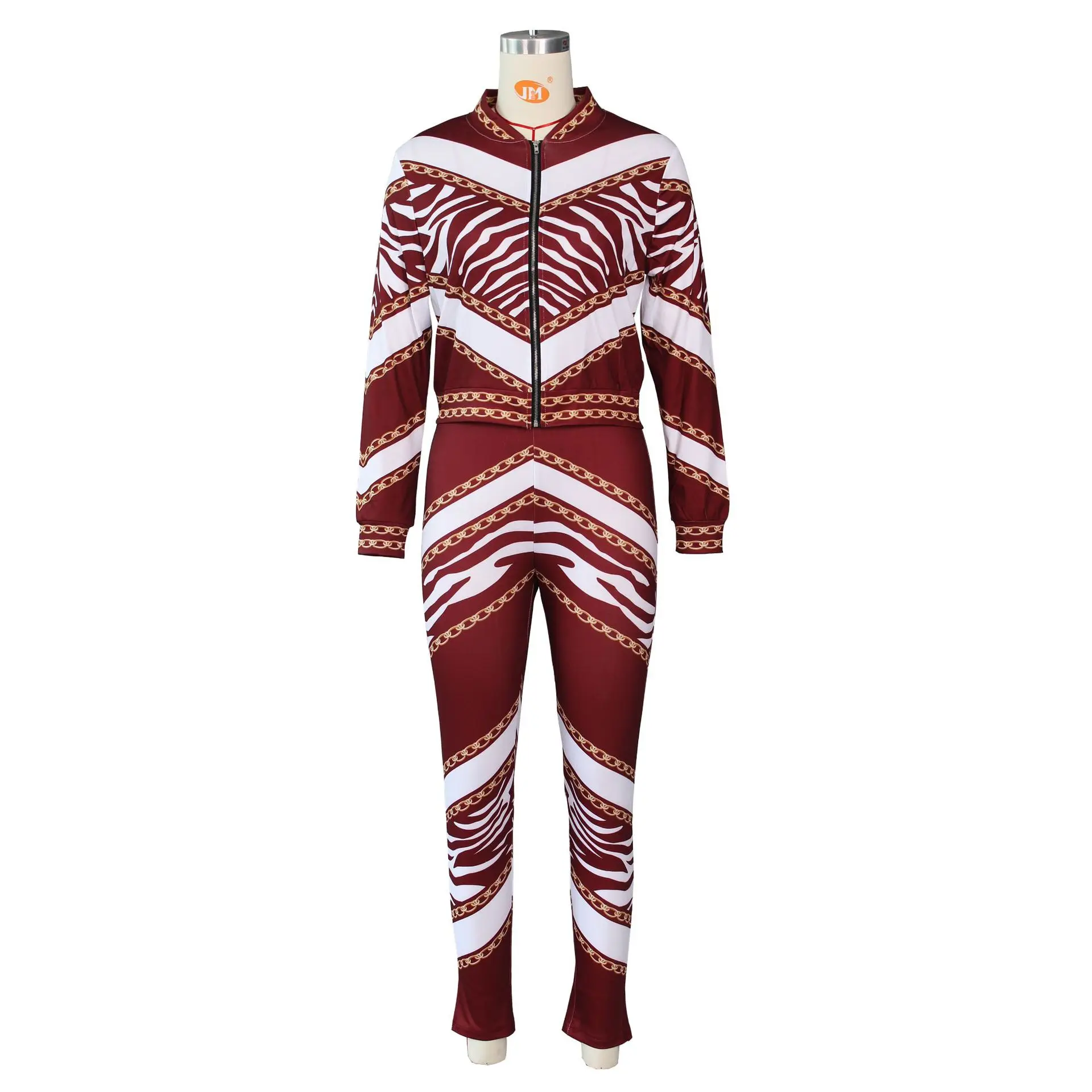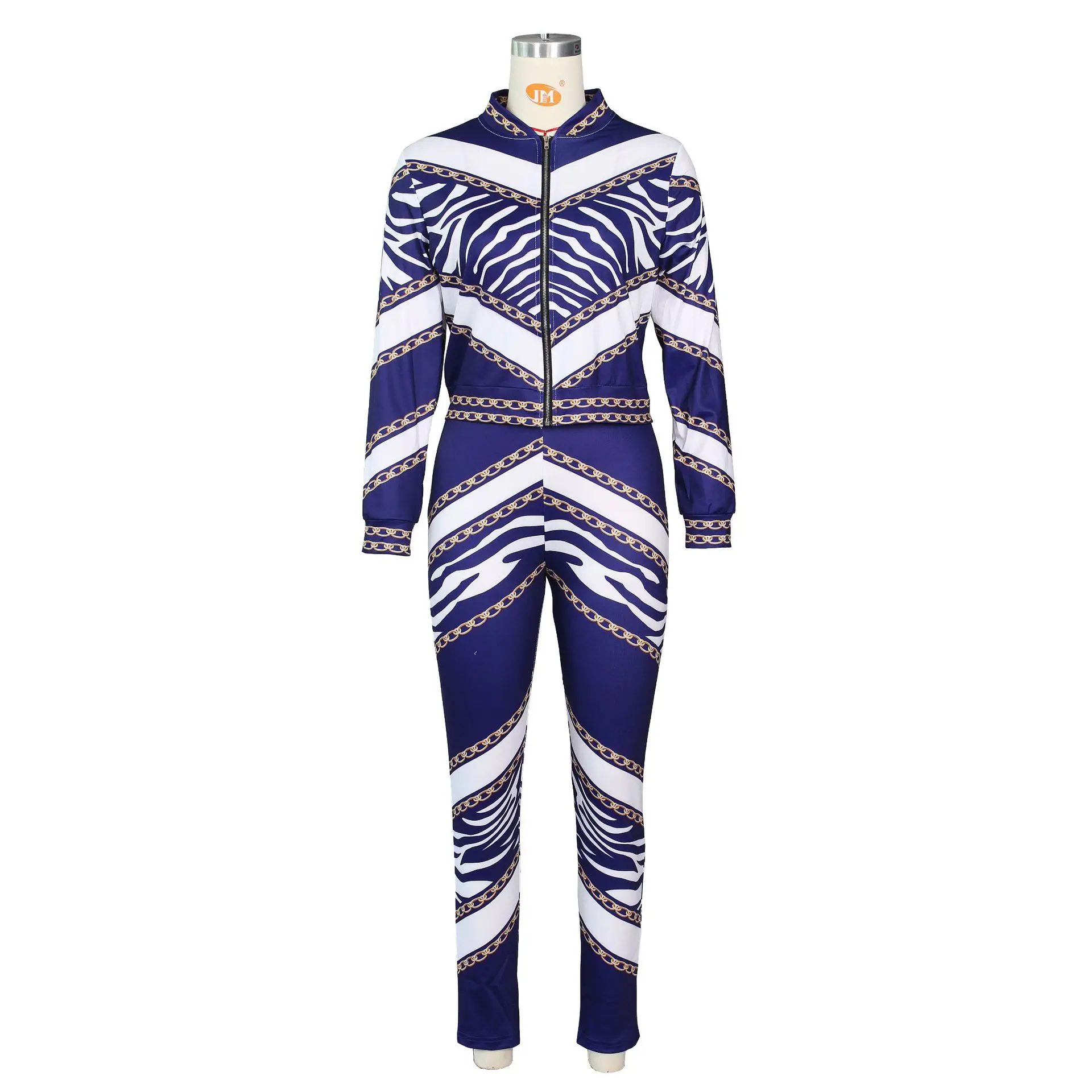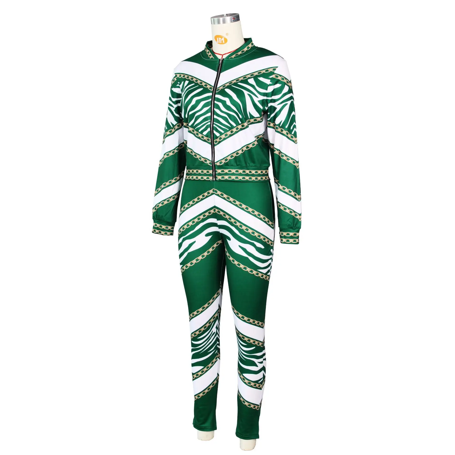 Autumn Printing Sports Suits Two Piece Pants Set Women Long Sleeve Zipper Two Piece Pants Sets