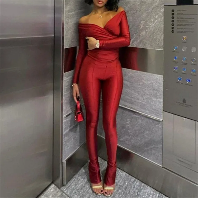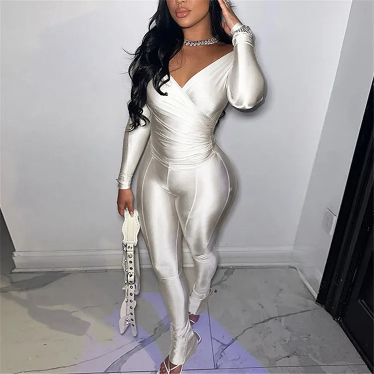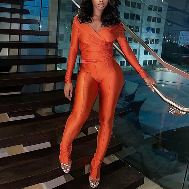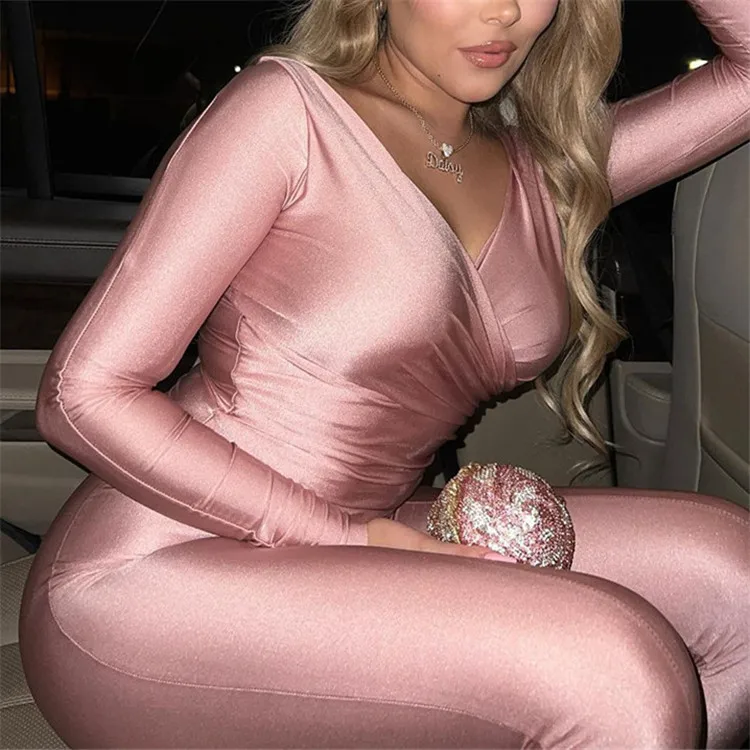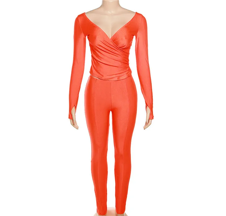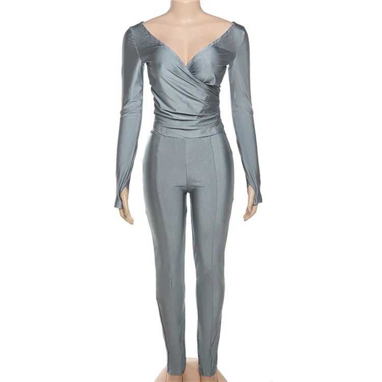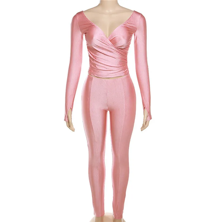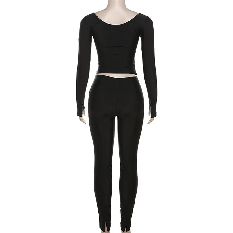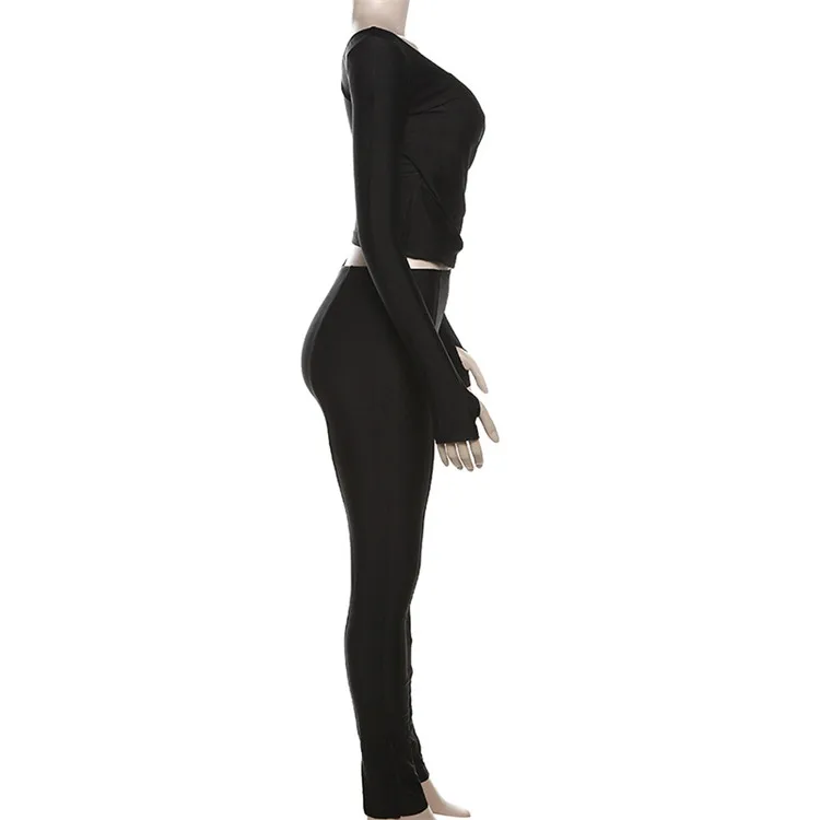 Autumn Sexy Black V Neck Bodycon Pants Set Casual Yoga For Women 2023 White Long Sleeve Crop Top Pants Set
