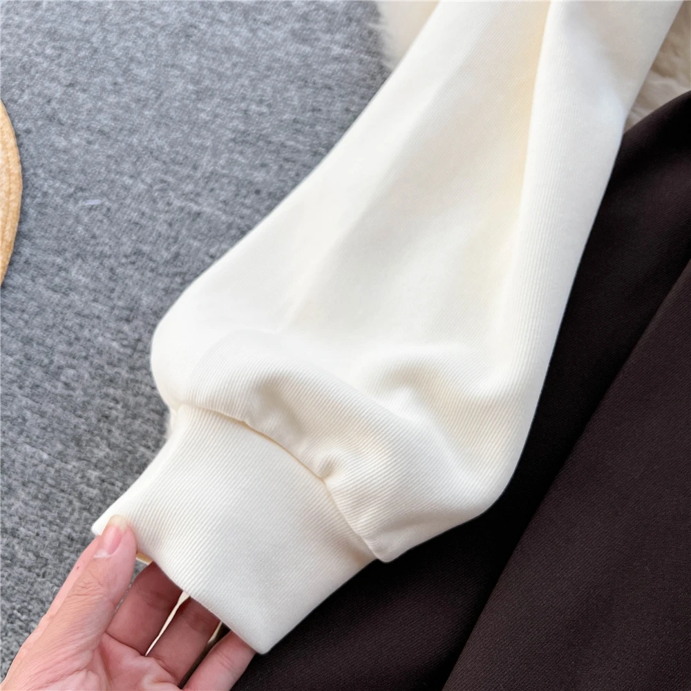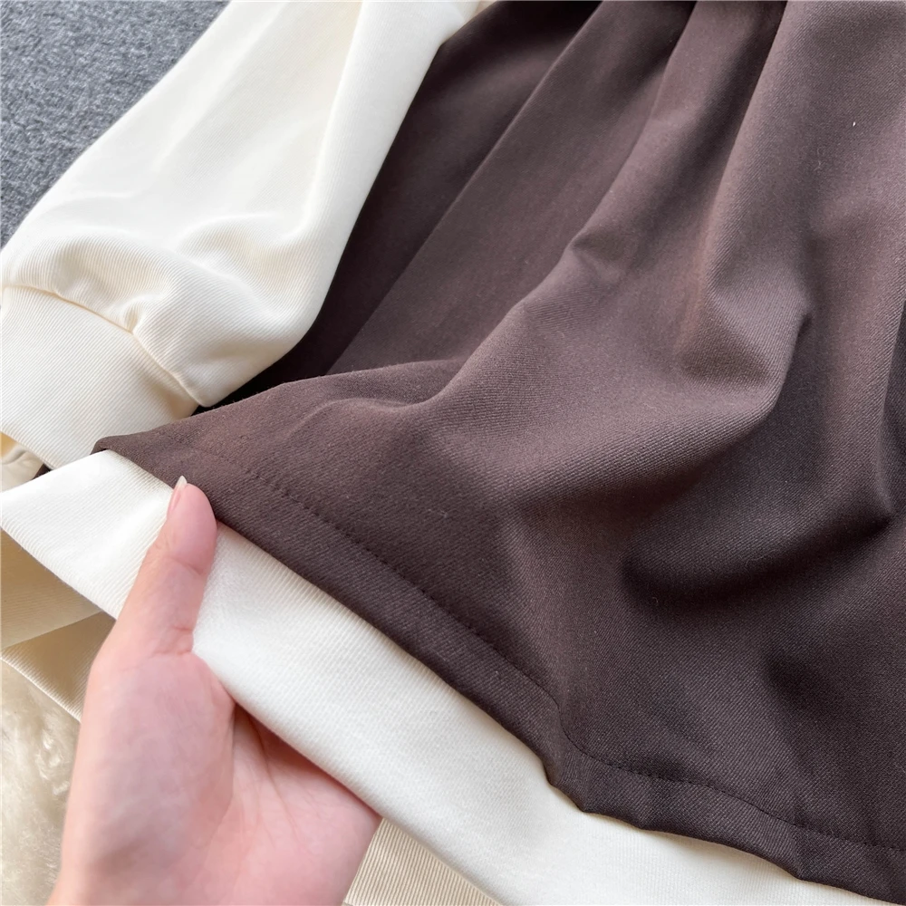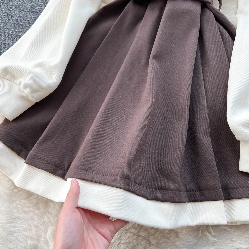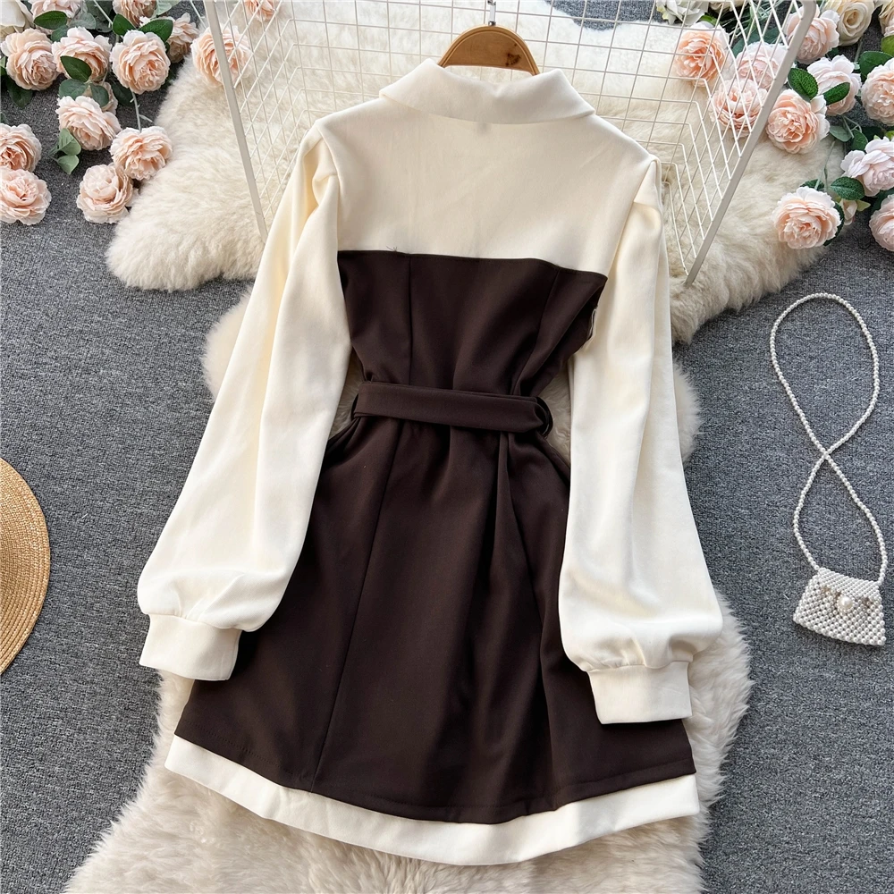 Autumn splicing against color to collect waist dress female French temperament small false two flounce edge A word skirt