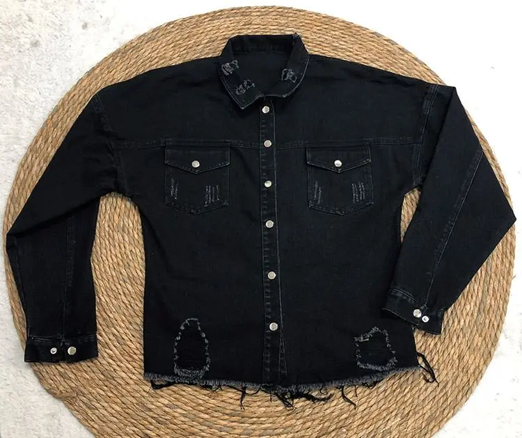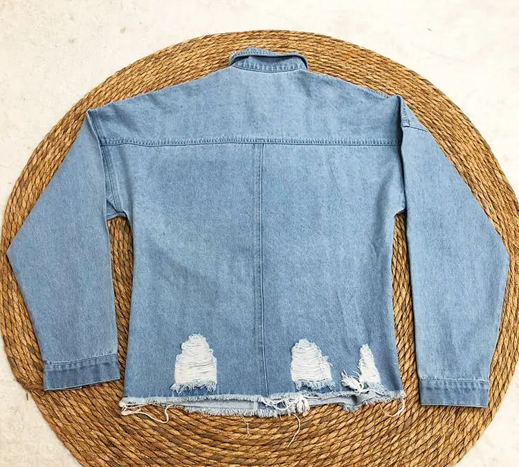 Autumn/Spring Ripped Loose Denim Long-sleeved Loose Washed Denim Women Casual Jacket