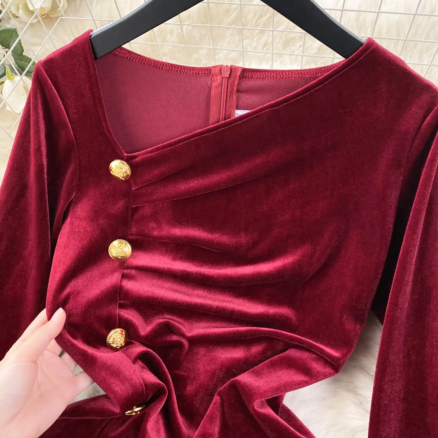 Autumn Vintage Turn-down Collar Asymmetric Tunic Slim Shirt Midi Dress For Women Long Sleeve Empire Lace Dresses Clothes Wome