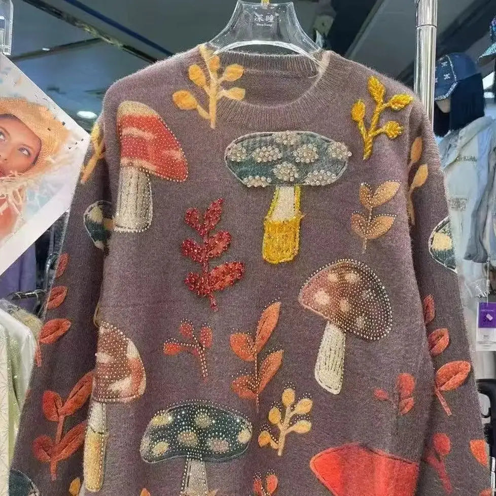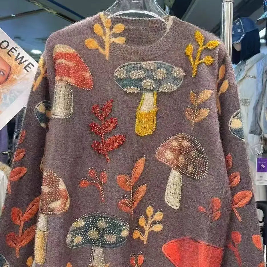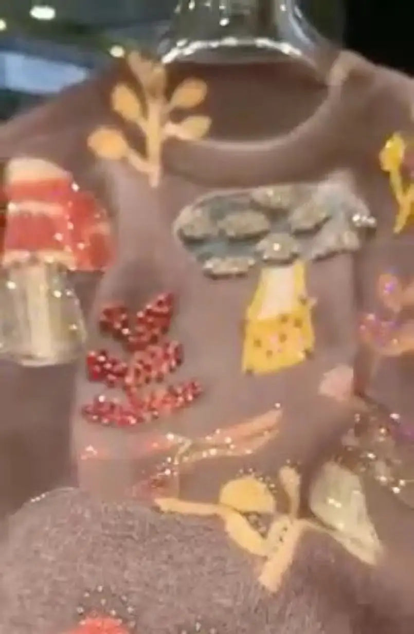 Autumn Winter 2025 Crystal Diamonds Stitch Thick Warm Sweater for Women's Trend Knit Top Outwears Knitwear Pullover pulls femme