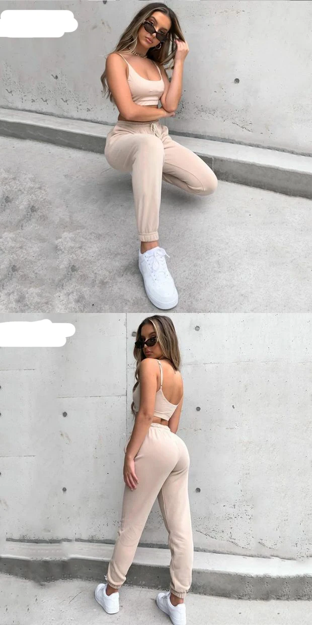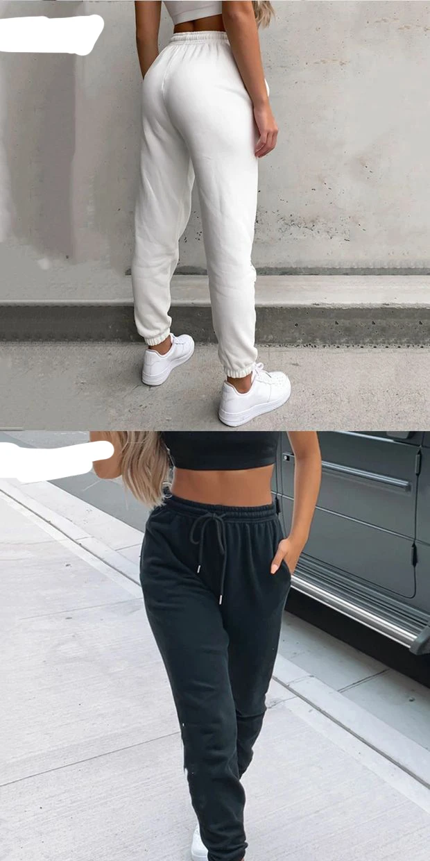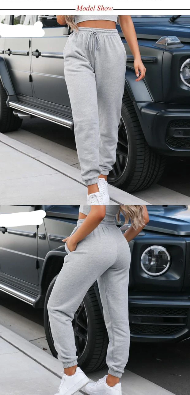 Autumn/Winter fleece sweatpants loose warm women solid color casual trousers