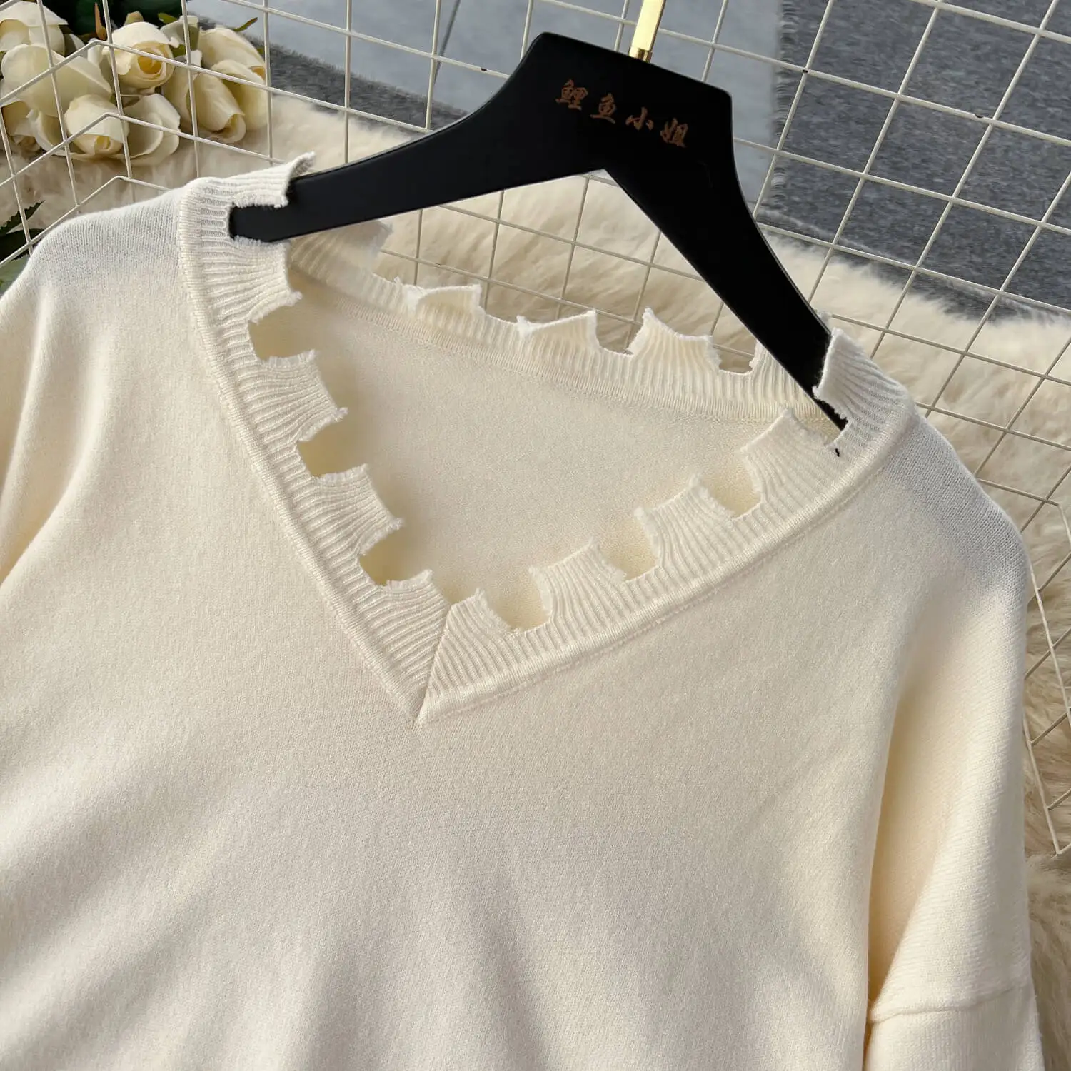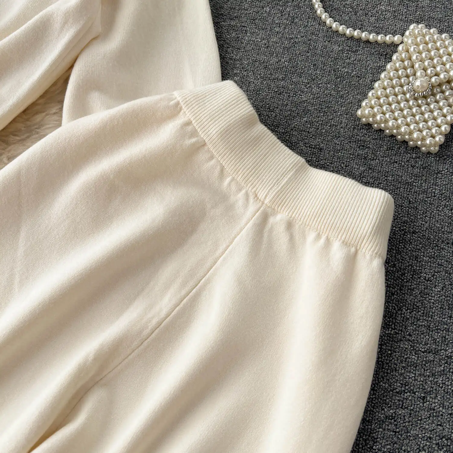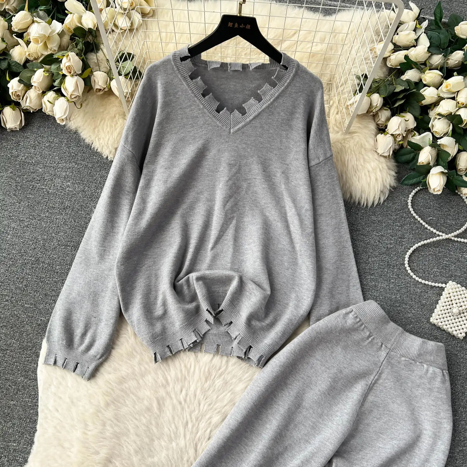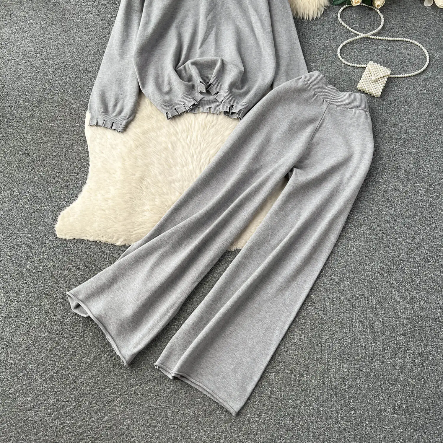Autumn/Winter Korean lazy casual loose fitting long sleeved knit sweater and high waist wide leg straight pants two-piece set