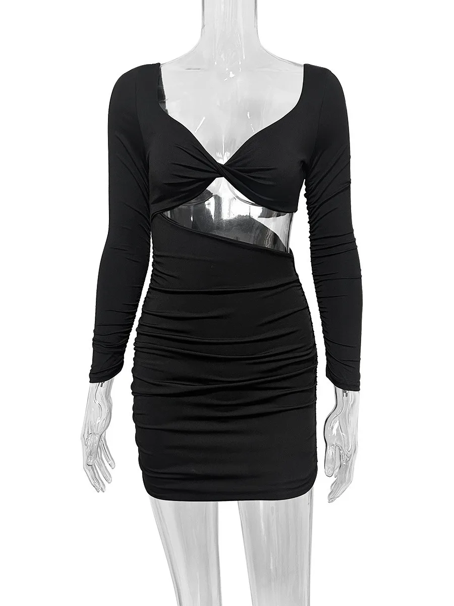 Party Women Clothing Stylish Cut out One Piece Pleated Bodycon Short Midi Dresses for Women Sexy ClubWear Outfits Women Clothes