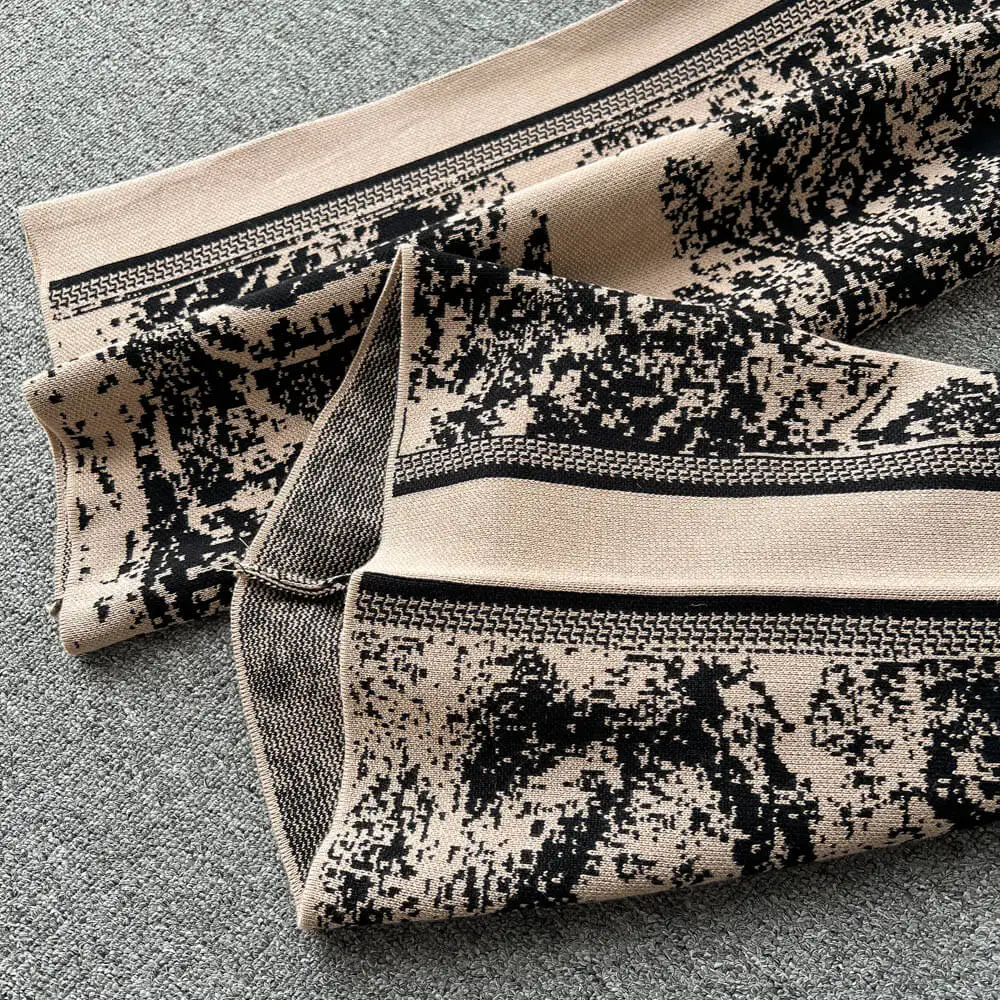 Autumn Winter New knitted Printed Set Women's Crew-Neck Sweater + Wide-Leg Trousers Two-Piece Set