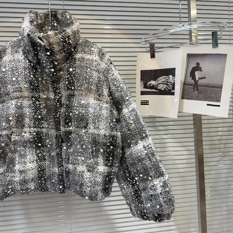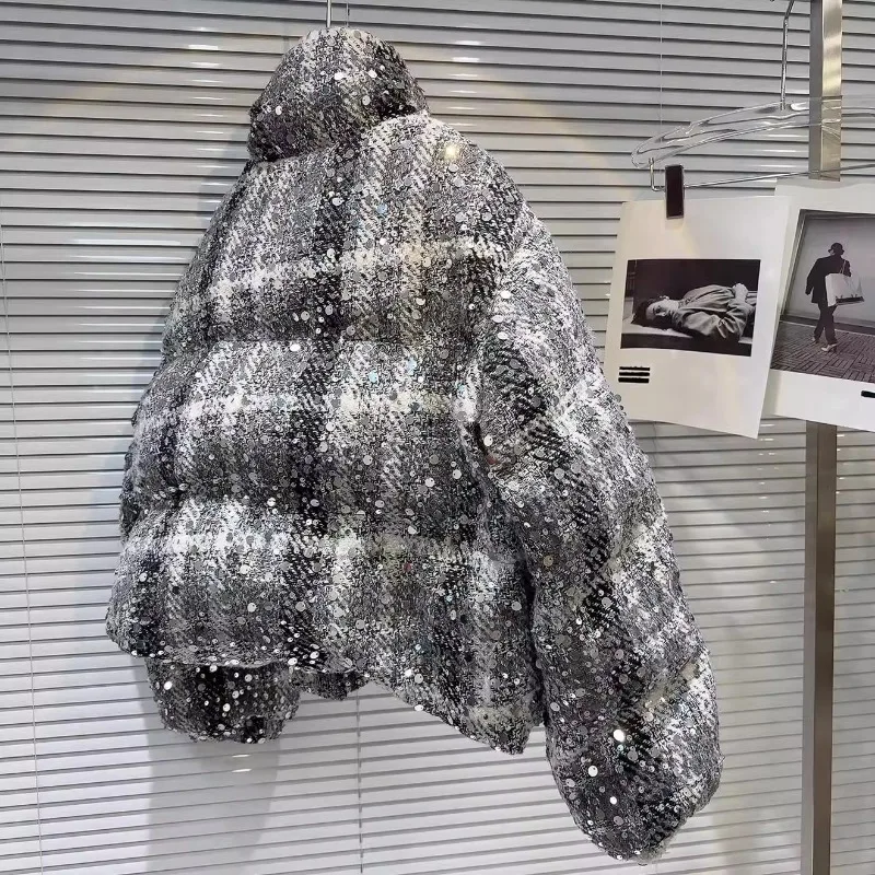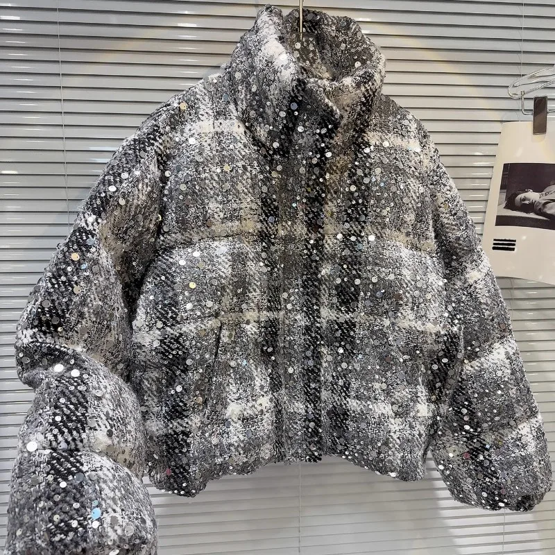 Autumn Winter New Unique Design Parkas Top Sequined Tweed Heavy Industry Soft Girls Warm Bread Jacket Down Coat Women's Clothing