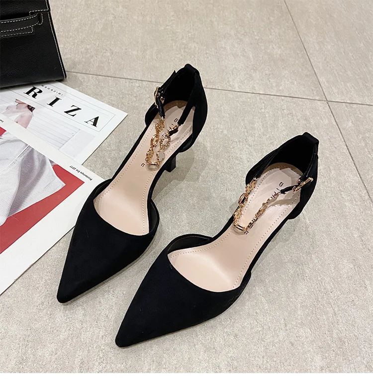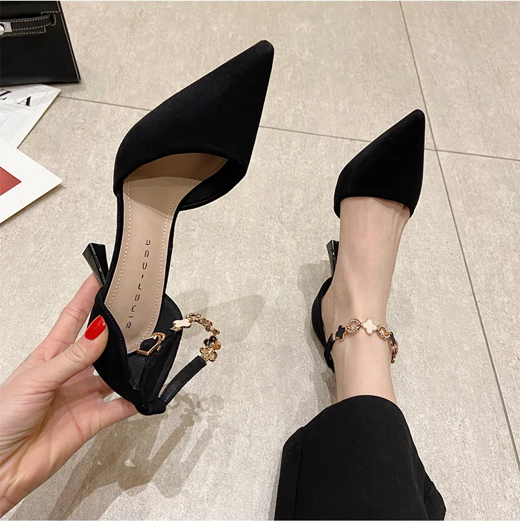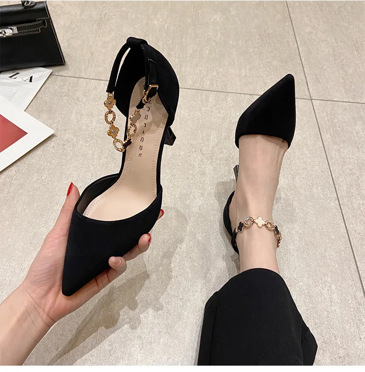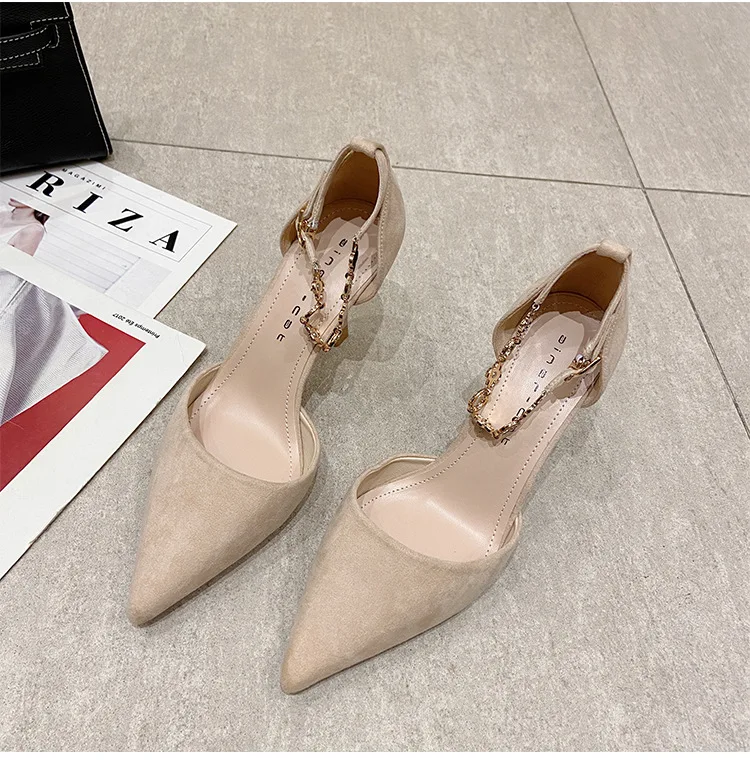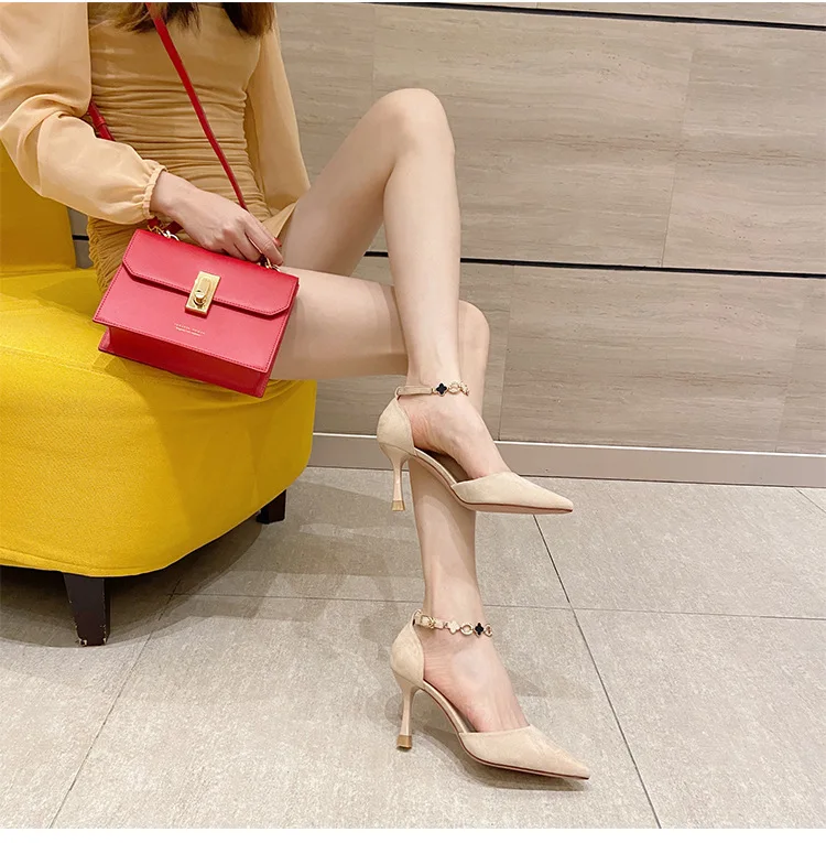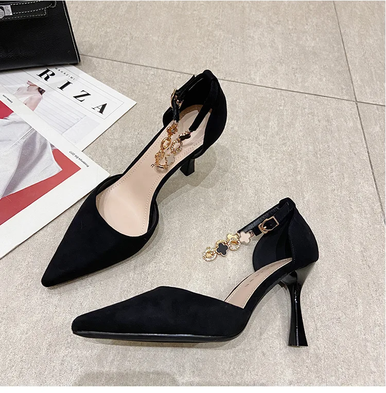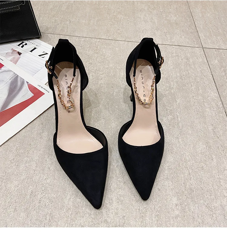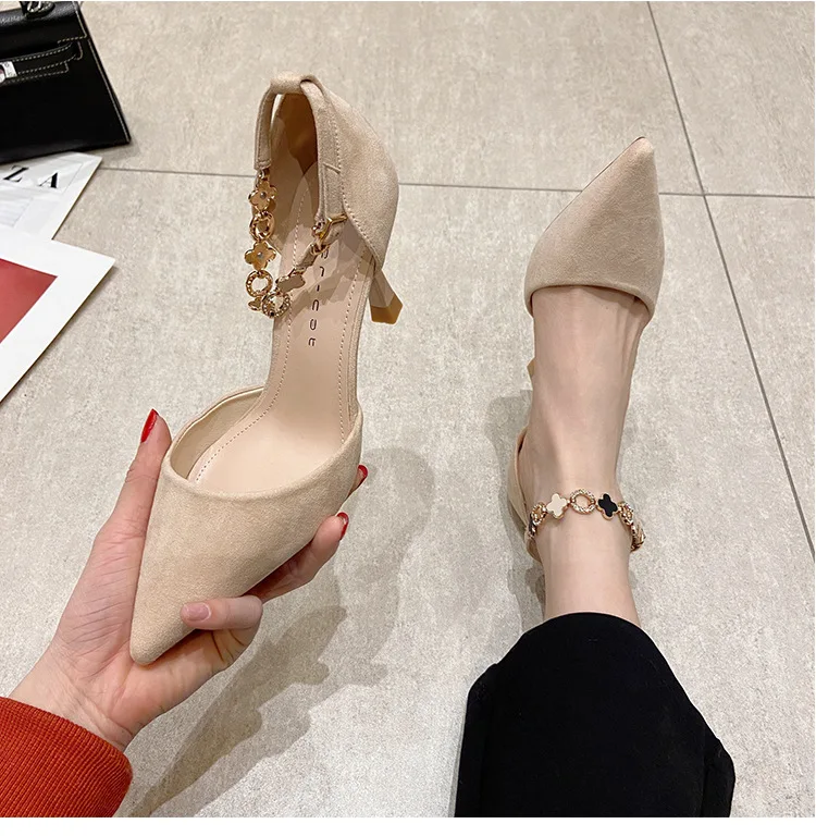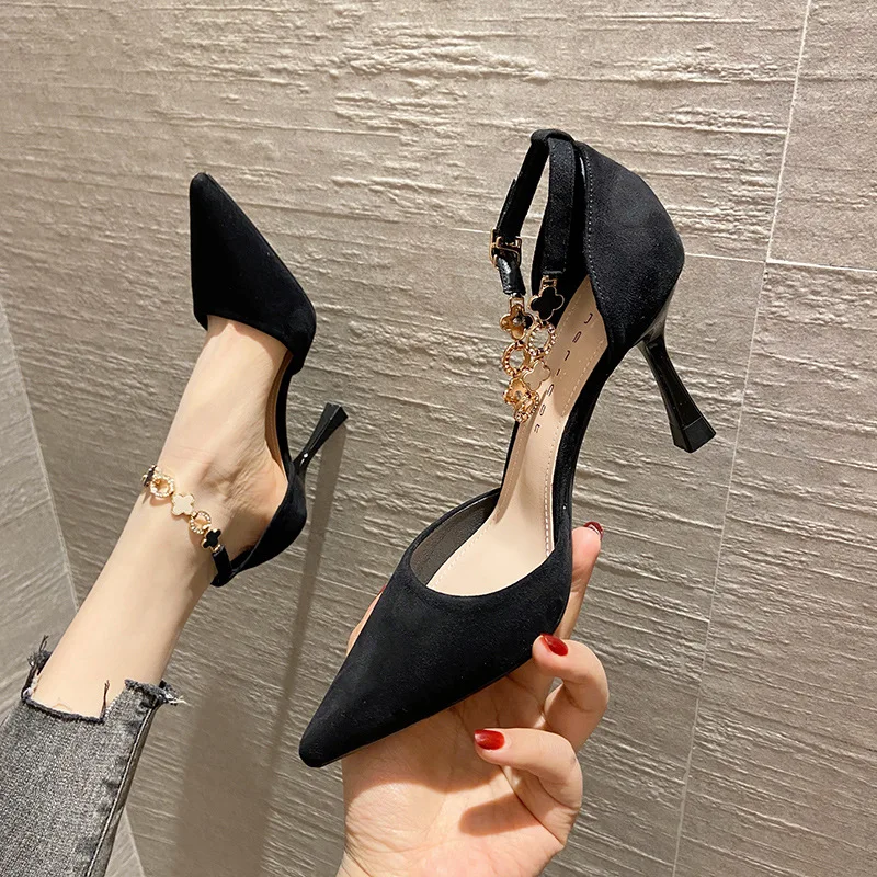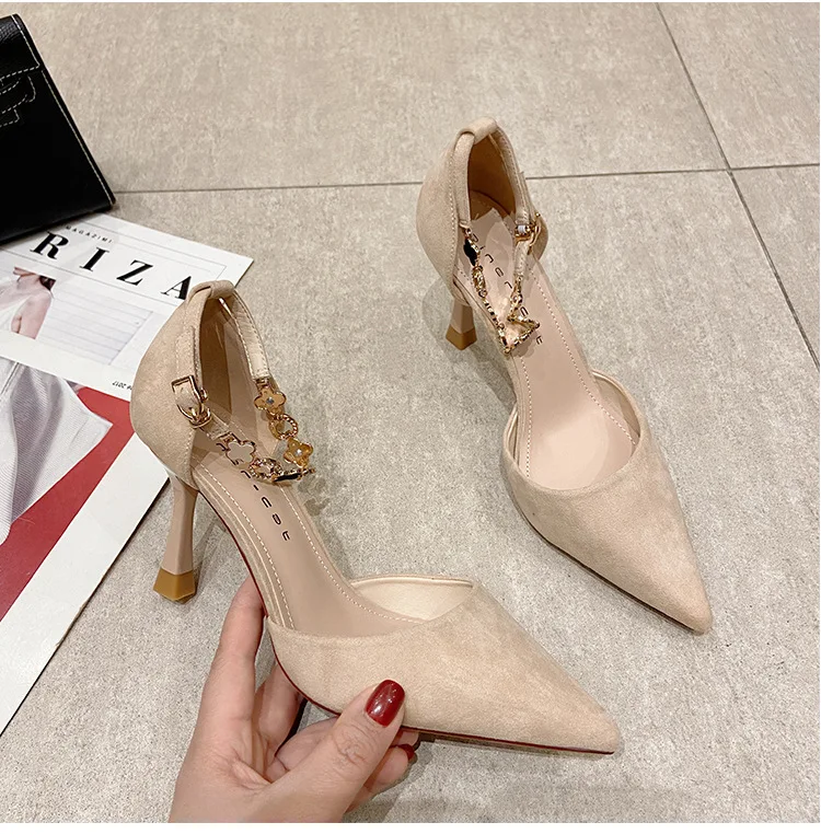 Autumn Women Stilettos Versatile Suede Pointed-toe Zapatos De Mujer Wrap-toe Hollow Out High Heel Pumps Ladies Daily Dating Shoe