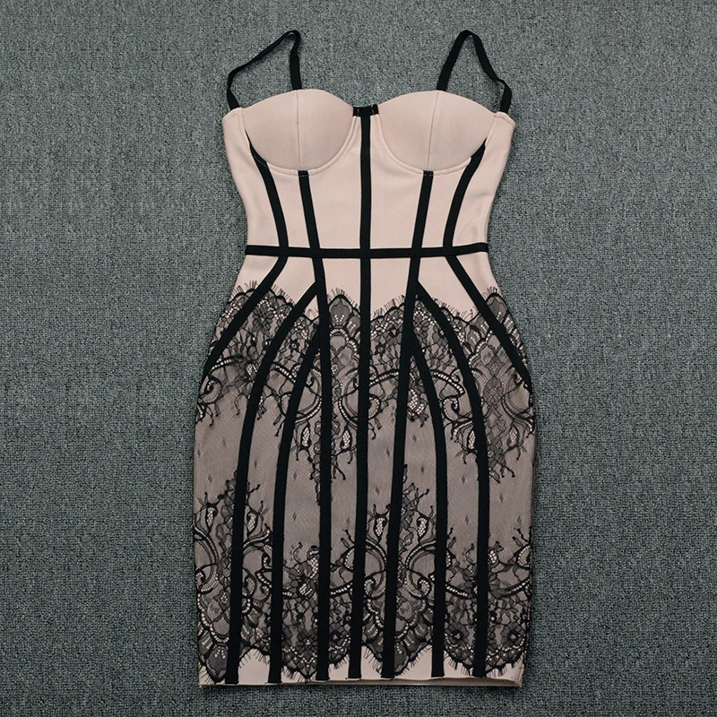 BA017 Hot Sale Elegant Women Party Lace Spaghetti Strap Bandage Dress Backless Bodycon Sexy Club Party Dresses Fashion Vestidos