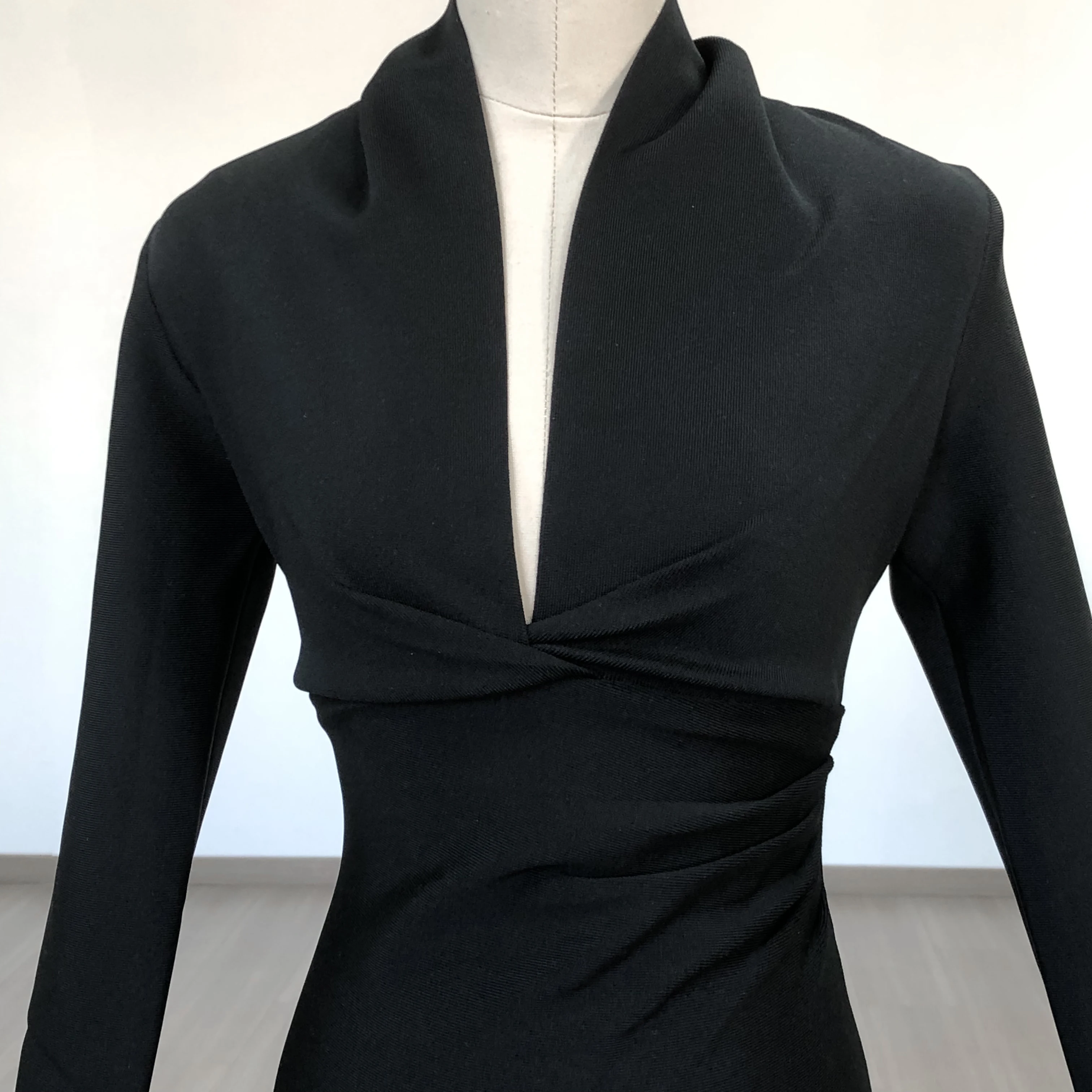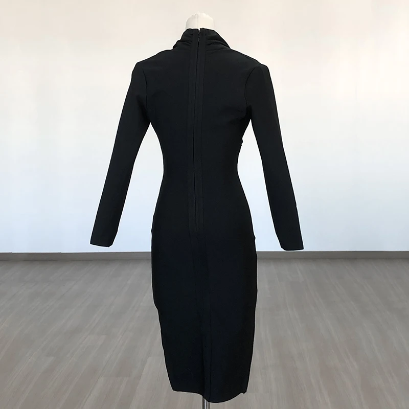 BA042 New Women's Top Party Casual Bandage Dress Long Sleeve High Quality Midi Vestidos Bodycon Deep V-Neck Sexy Evening Dresses