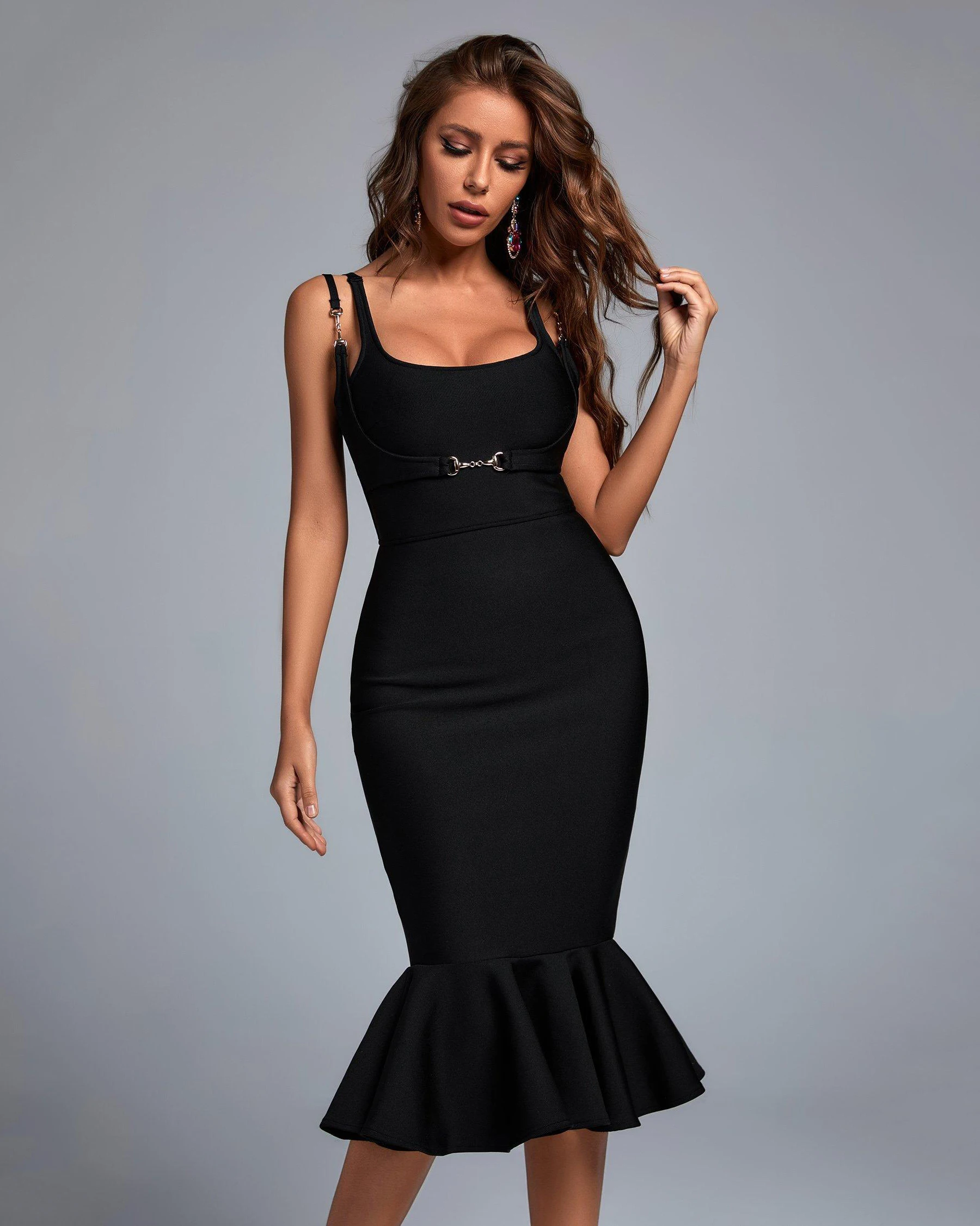 BA205 Bandage Dresses Square Neck Sleeveless Sexy Bodycon Evening Dress Fashion Party Causal Fishtail Black Vestidos For Woman