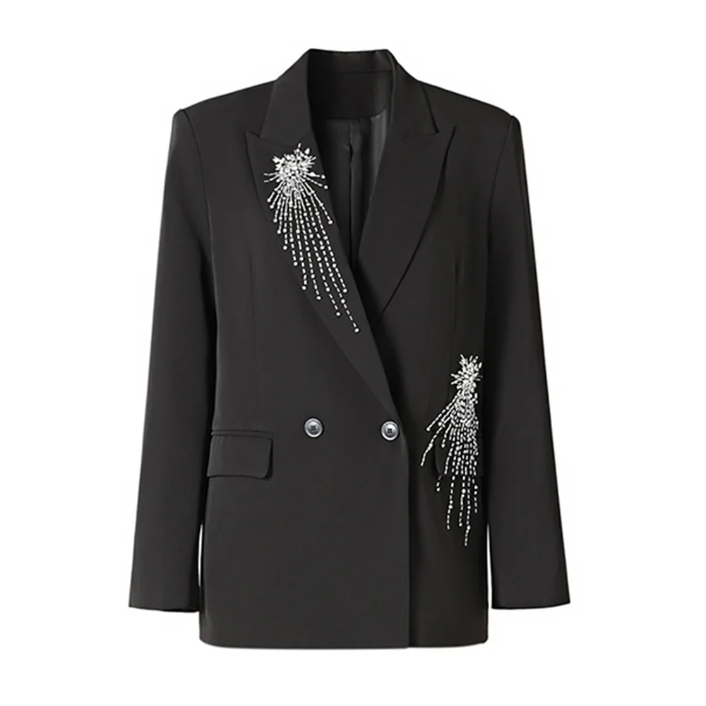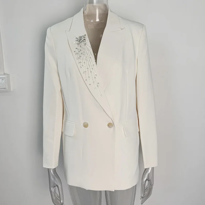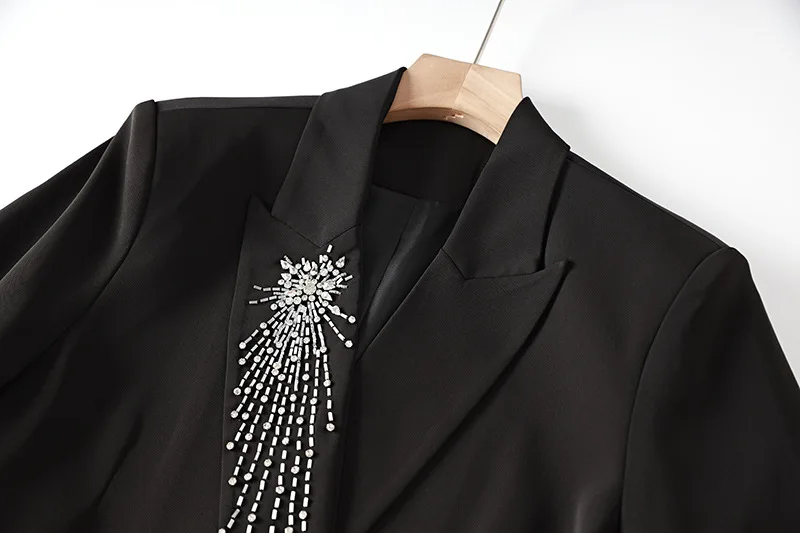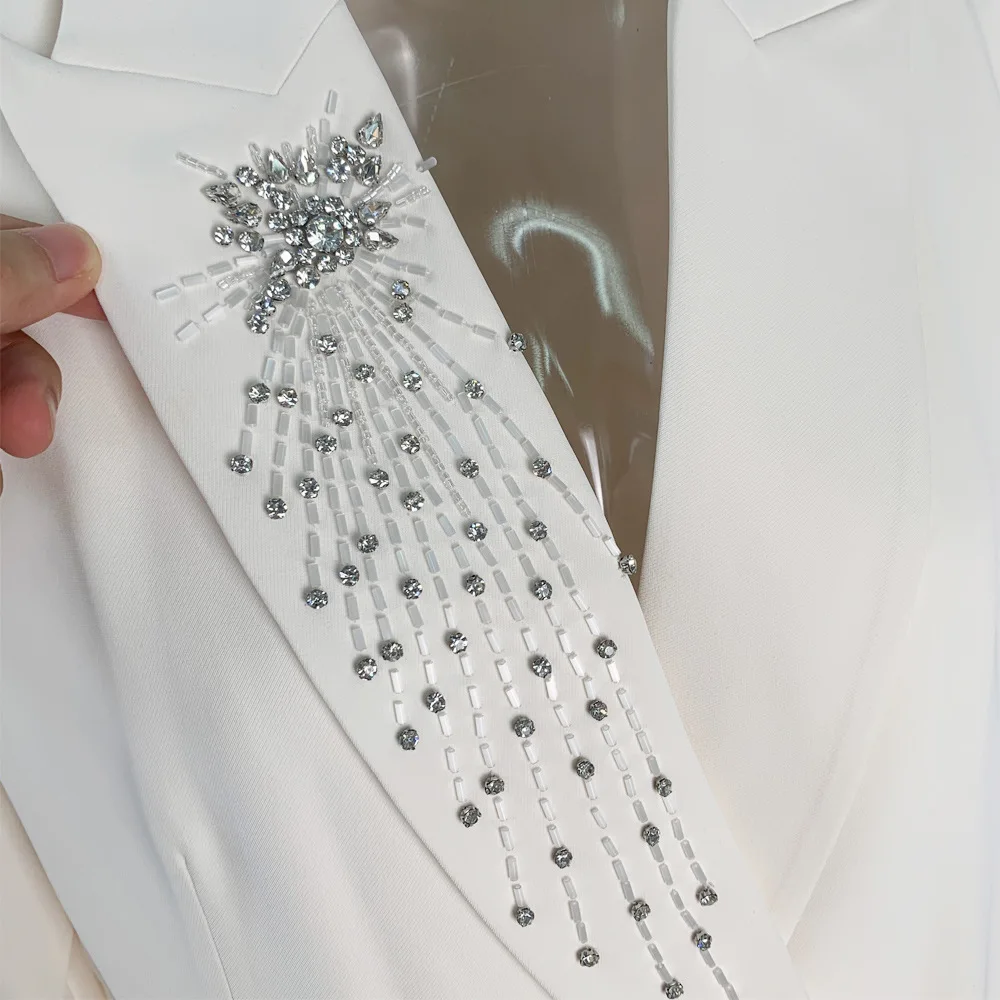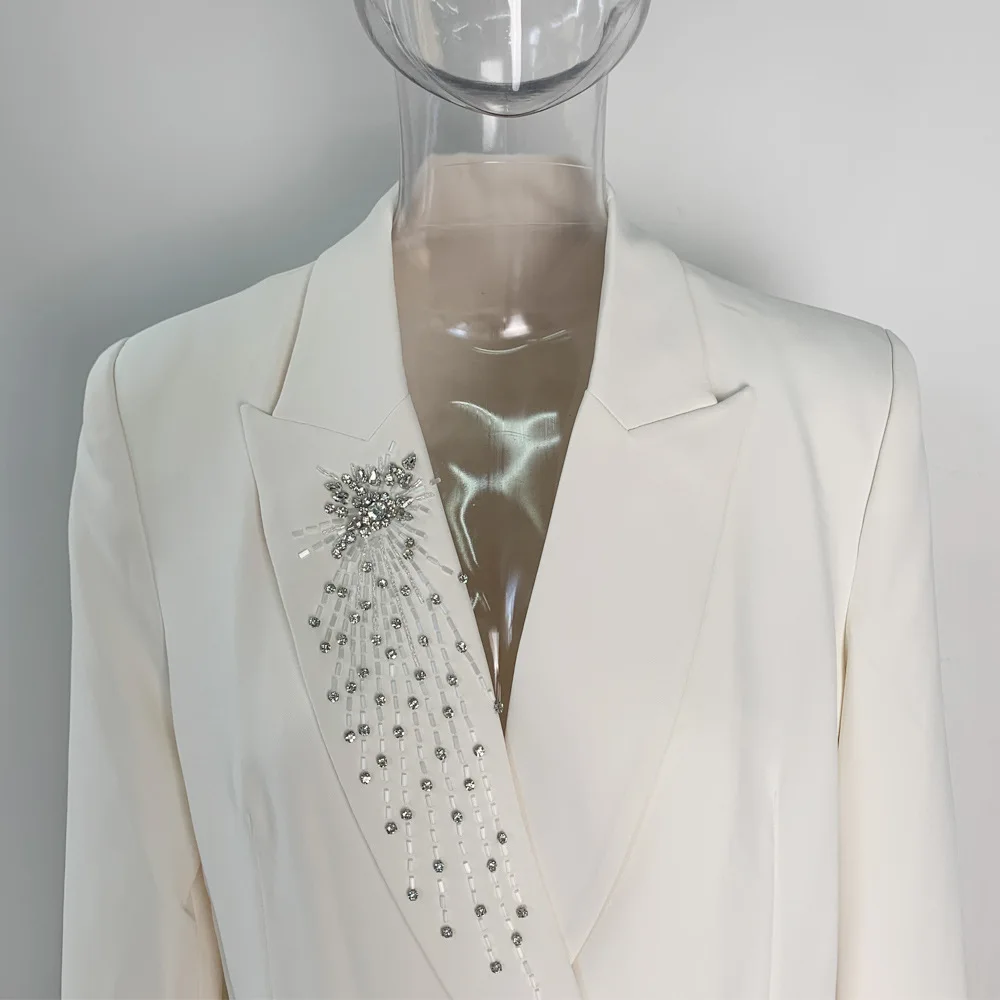 BA2240 Black And White Blazer Elegant Formal Long Sleeve Jacket Luxury Blazer With Crystal And Beading