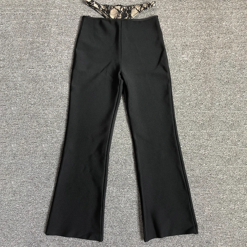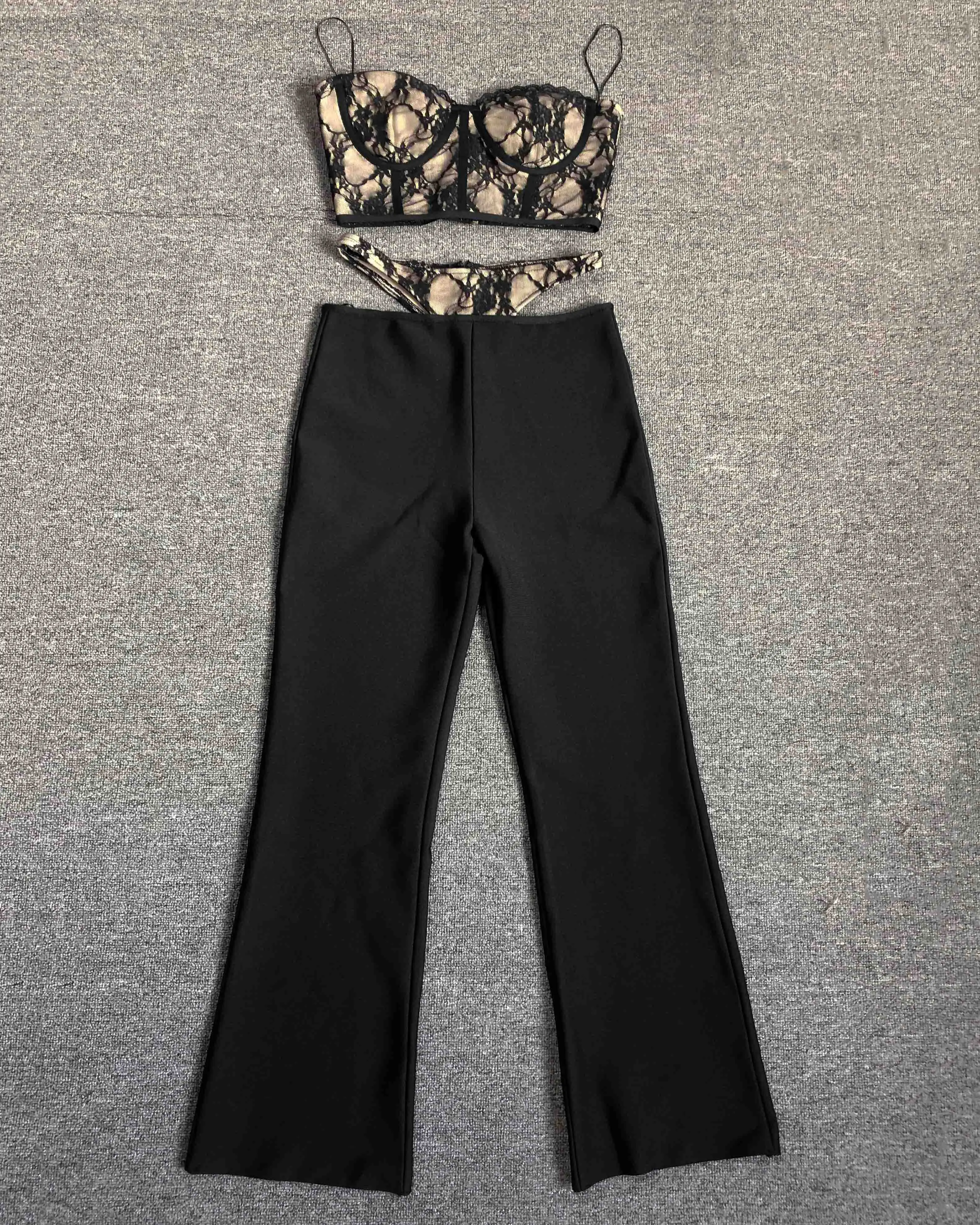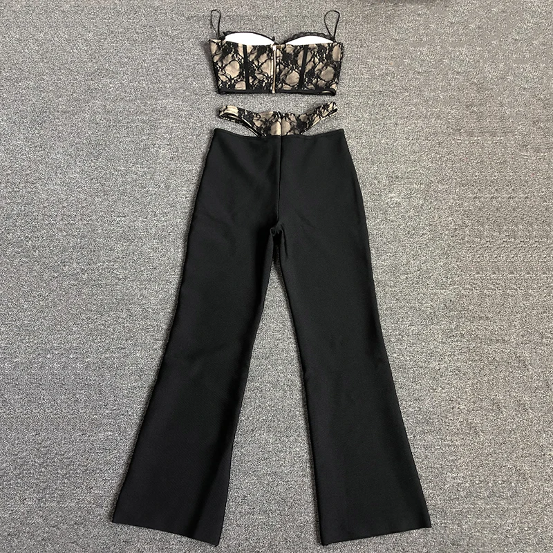 BA356 New Bandage Woman Suit Summer Lace Off The Shoulder Sexy Top Long Pants High Quality Fashion Party Black Two Pieces Set