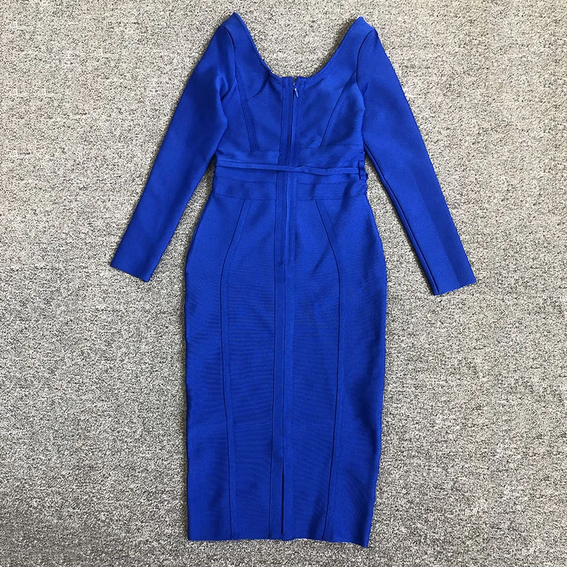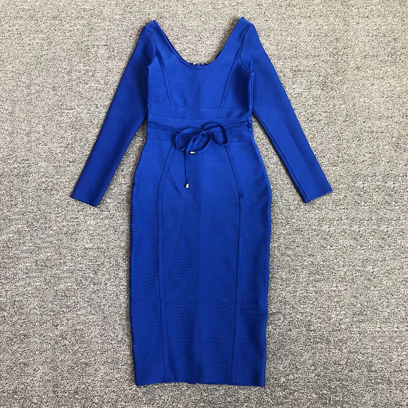 BA391 New Long Sleeve Round Neck Bandage Dress Fashion Party Cocktail Evening Dresses Casual Elegant Bodycon Vestidos For Woman