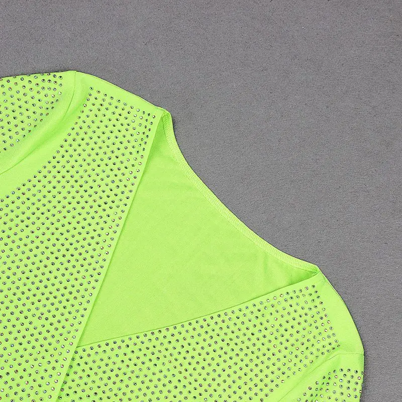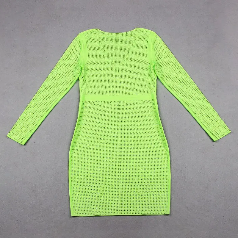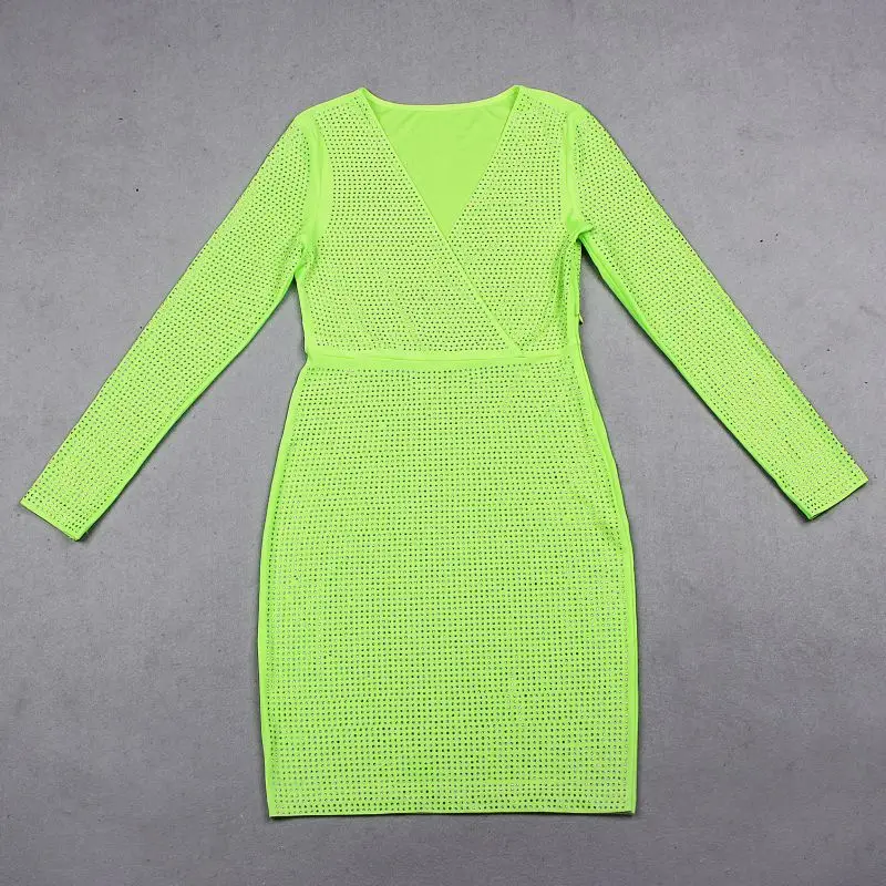 Bandage Mini Beading Deep V-Neck Long Sleeve Vestidos Bodycon Evening Celebrity Club Summer Women Dresses