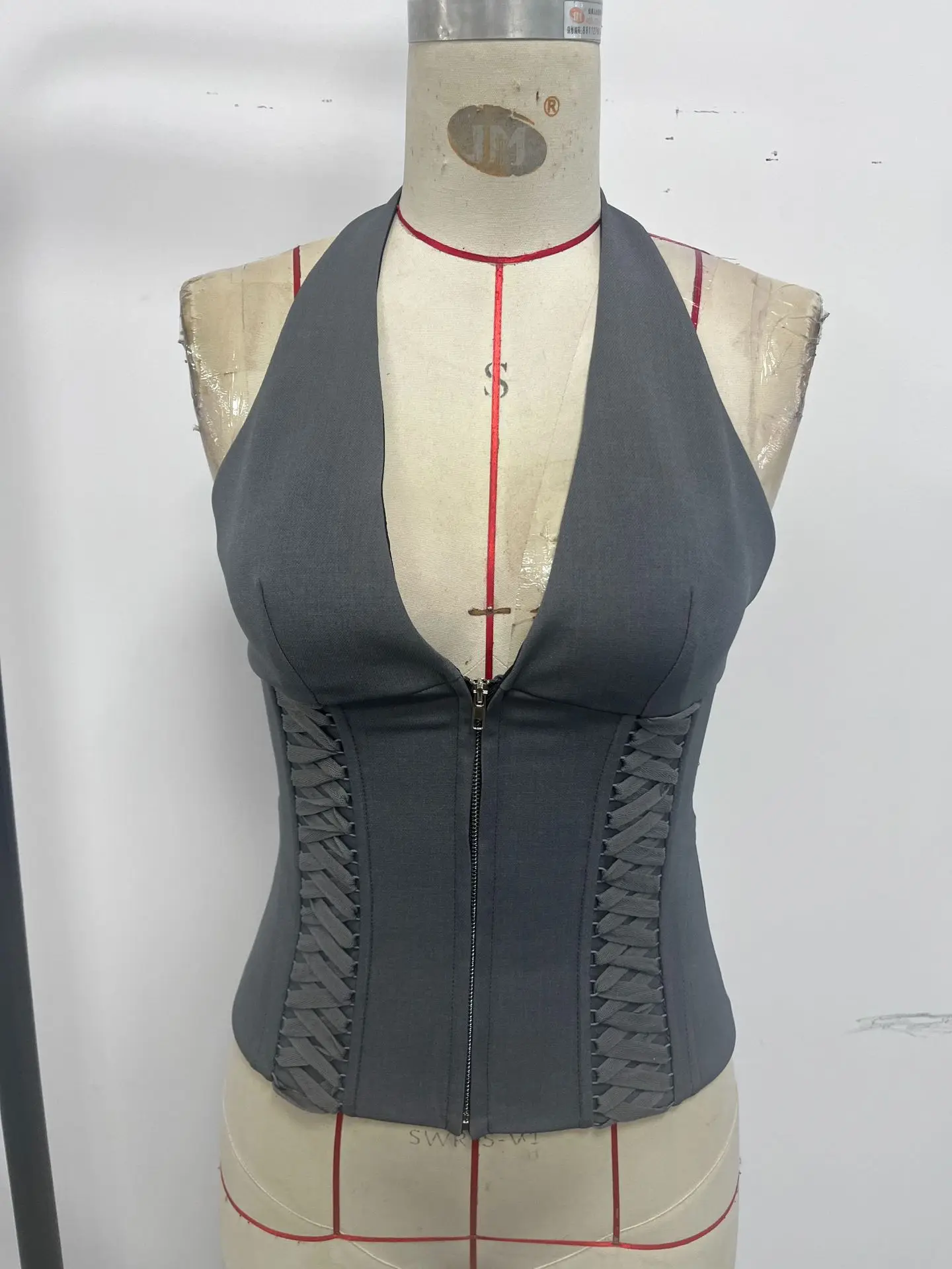 Bandage Shaper Corset Tops Vest Clothes Y2k Sexy Hollow Out Halter Cami Woman French Slim Corsets Bustier Zipper Tank Top Summer