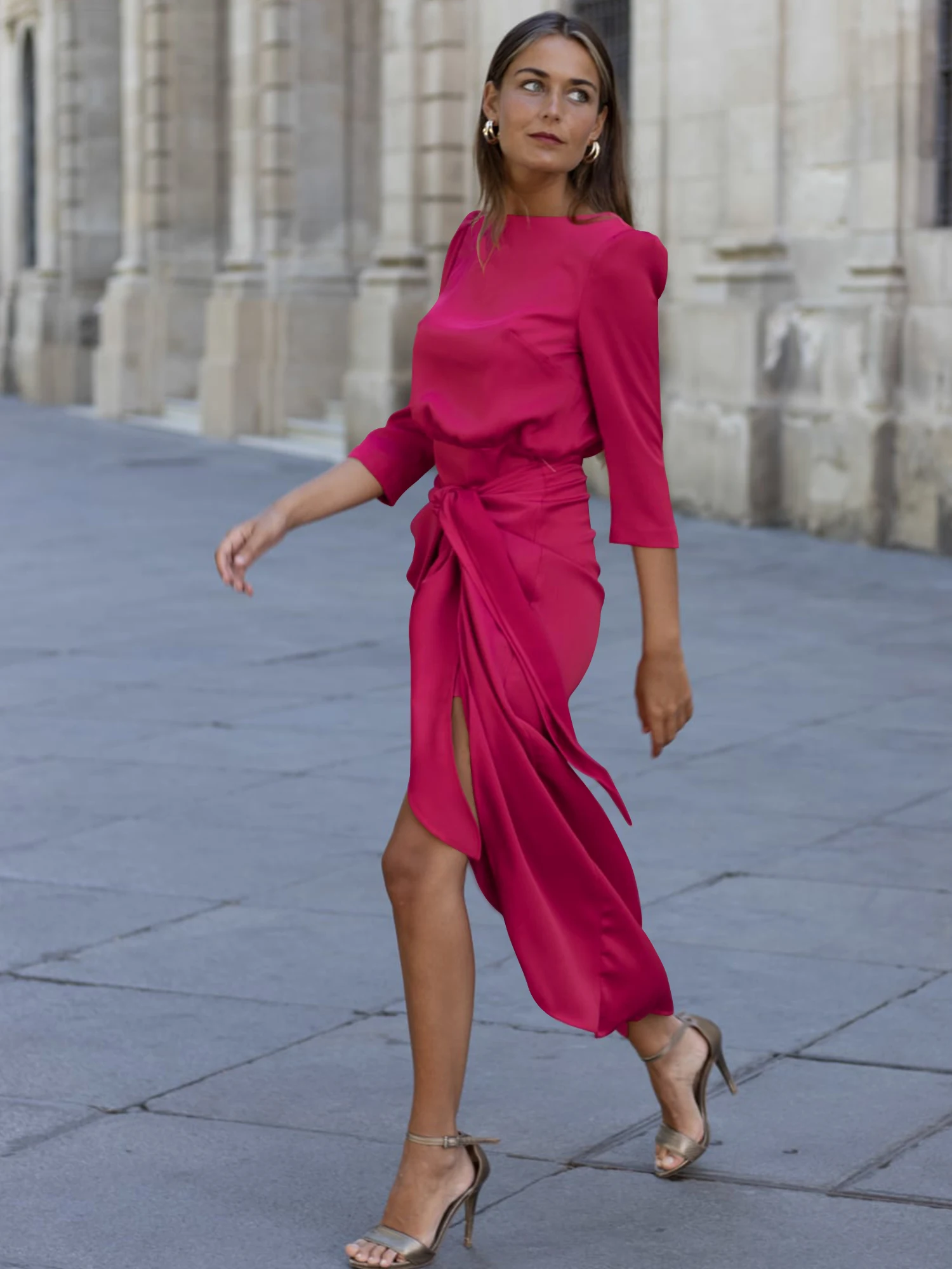 Bandage Slit Casual Midi Long Sleeve Occasion Dresses Women Elegant