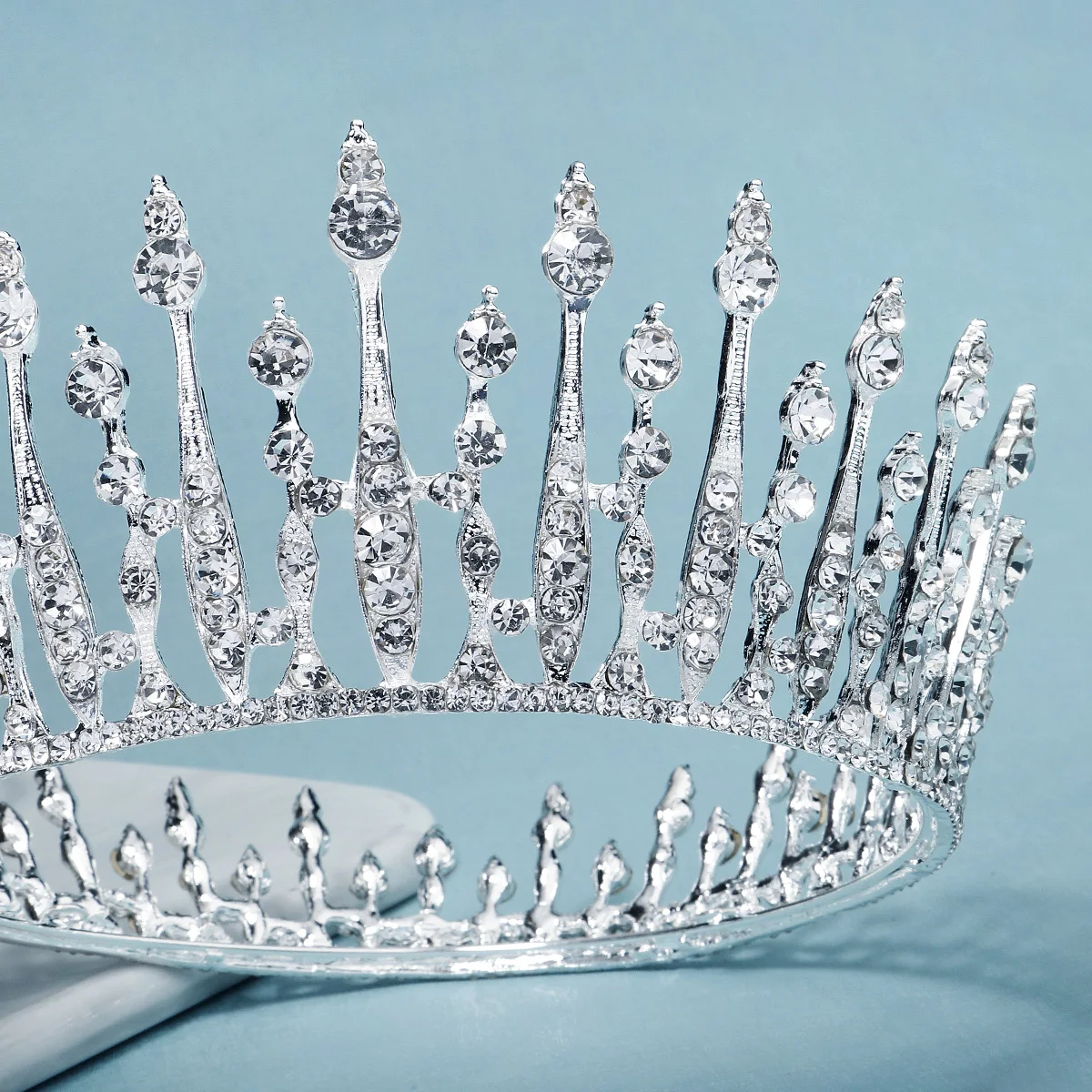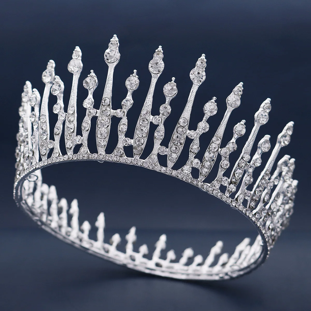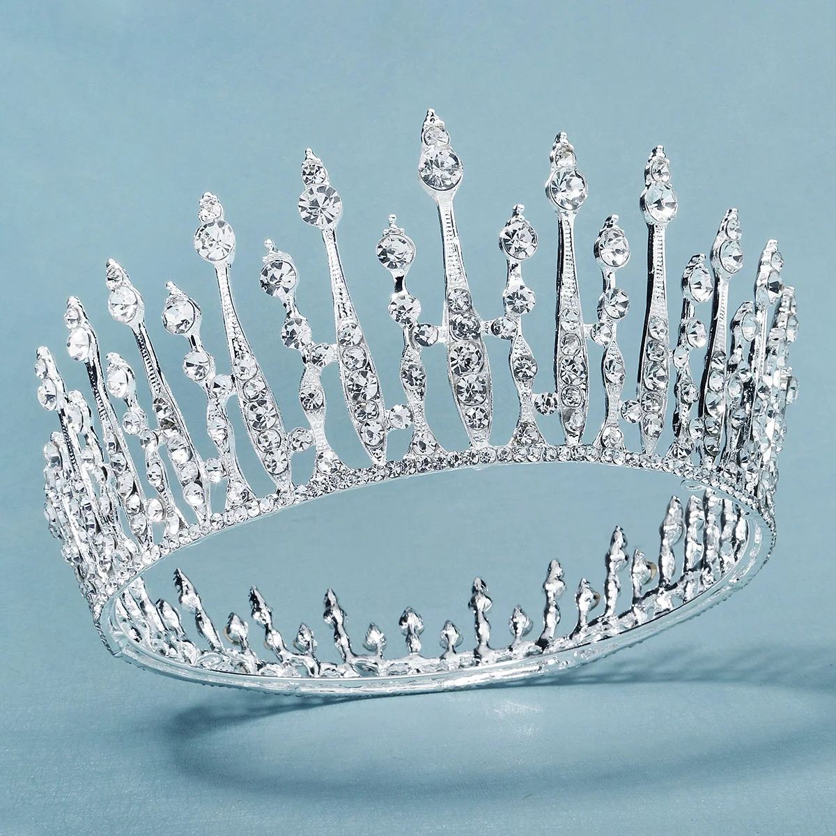 Baroque Round Silver Luxury Pageant Rhinestone Crystal Tiaras Crown Molding Headpieces For King Queens and Bride