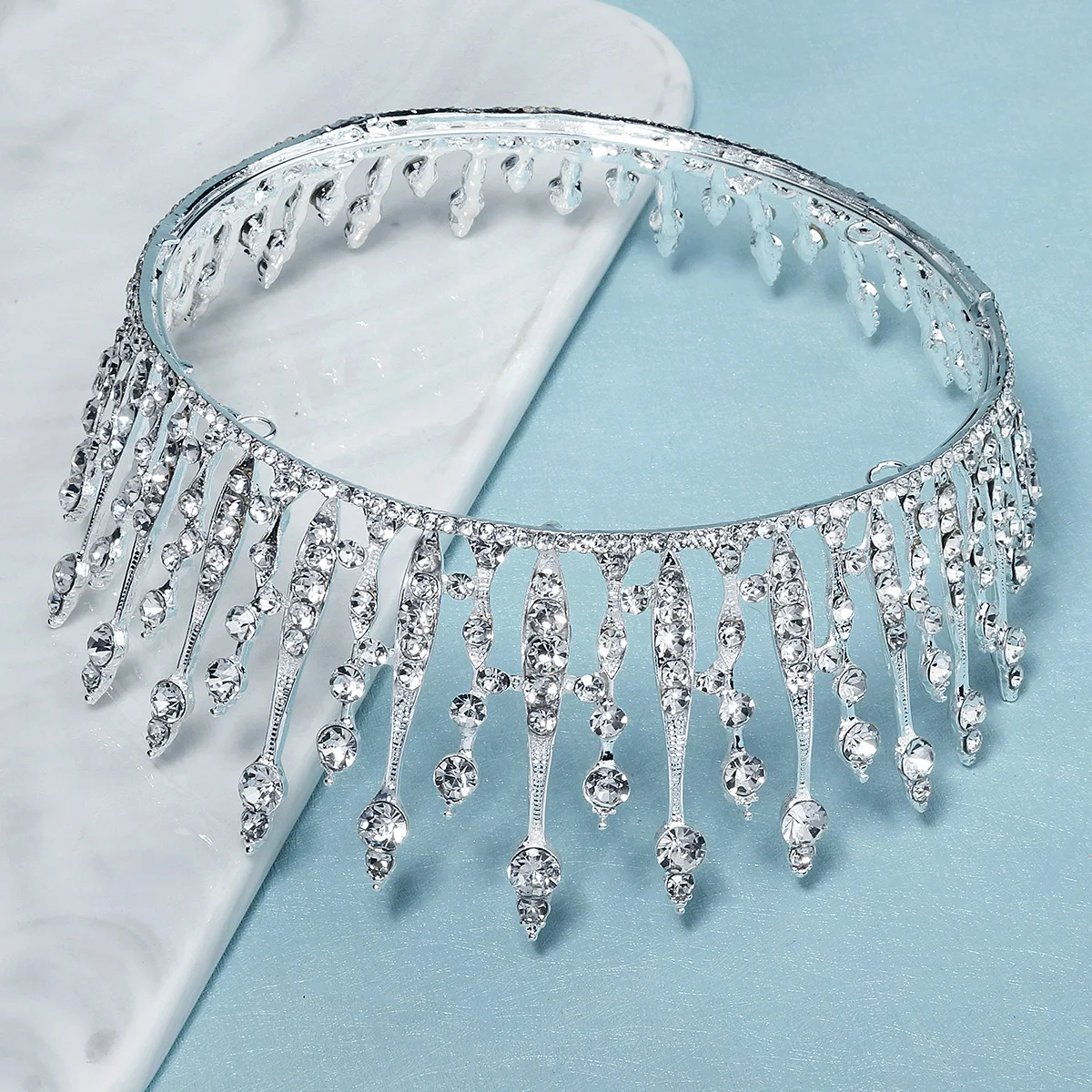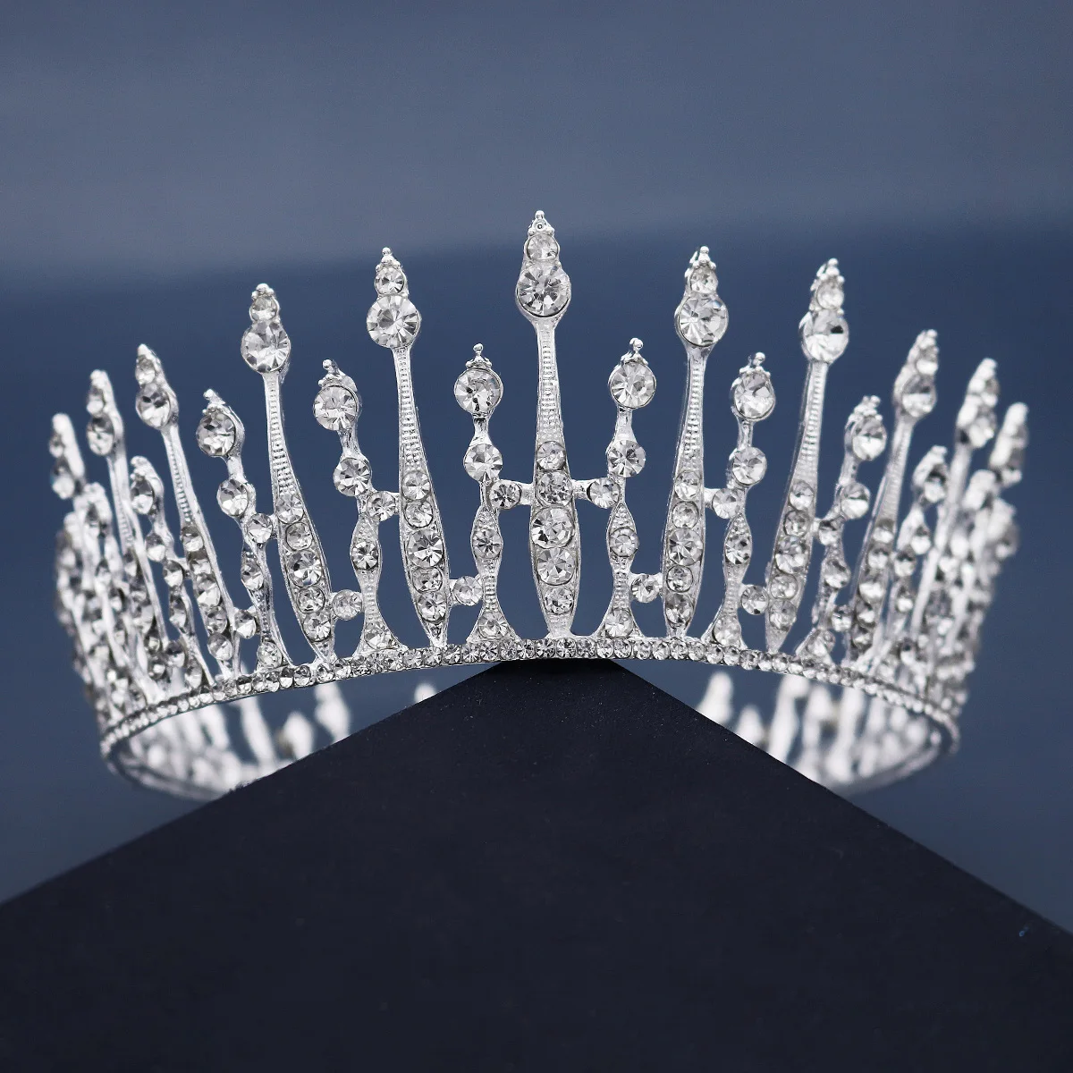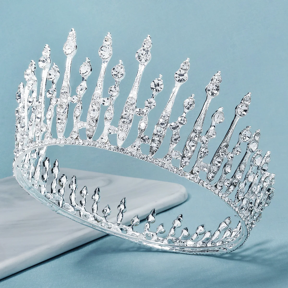 Baroque Round Silver Luxury Pageant Rhinestone Crystal Tiaras Crown Molding Headpieces For King Queens and Bride