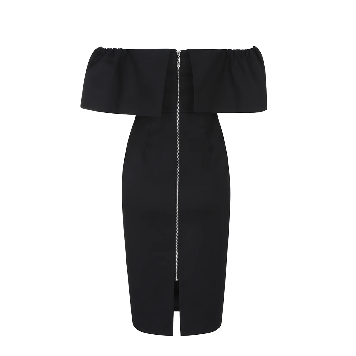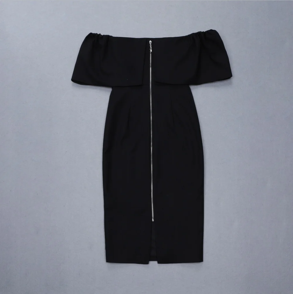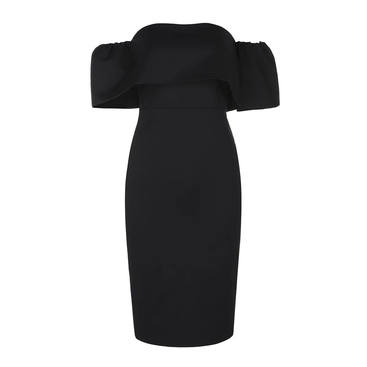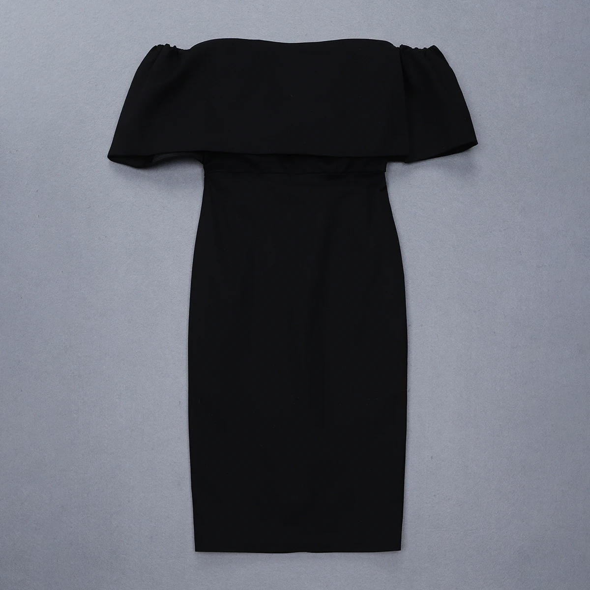 Basic Black Bandeau Short Sleeve Bodycon Women Casual Summer Midi Dress