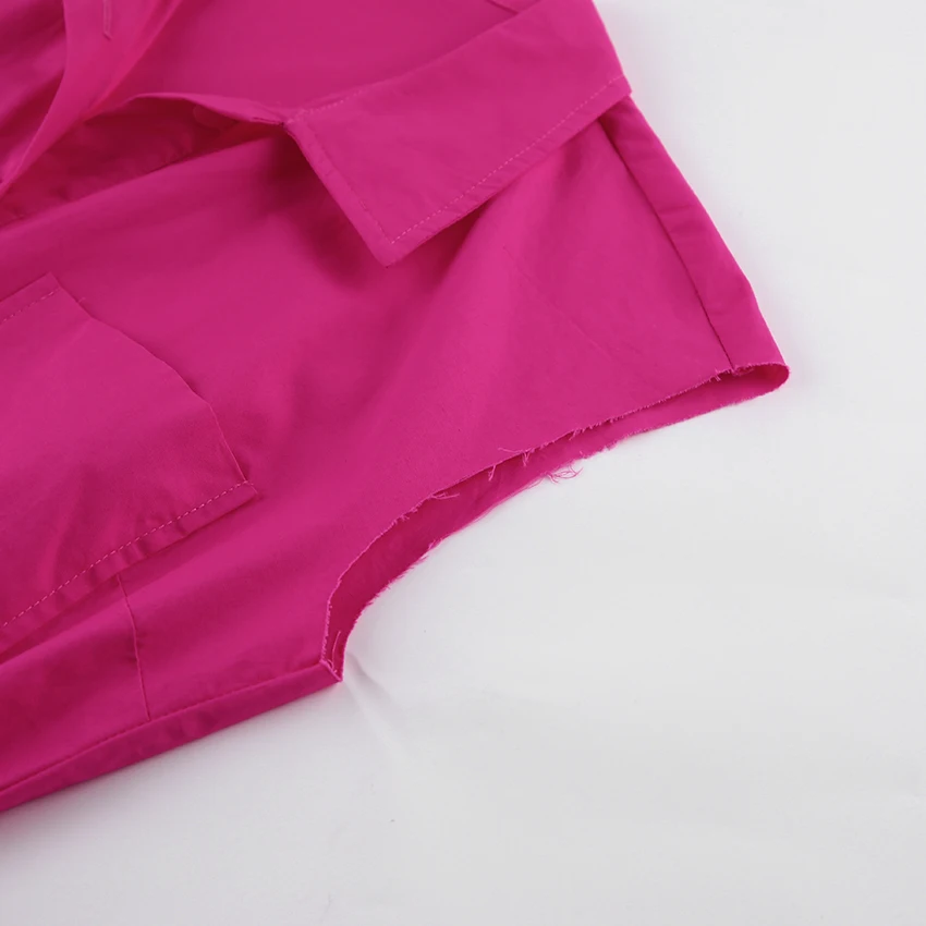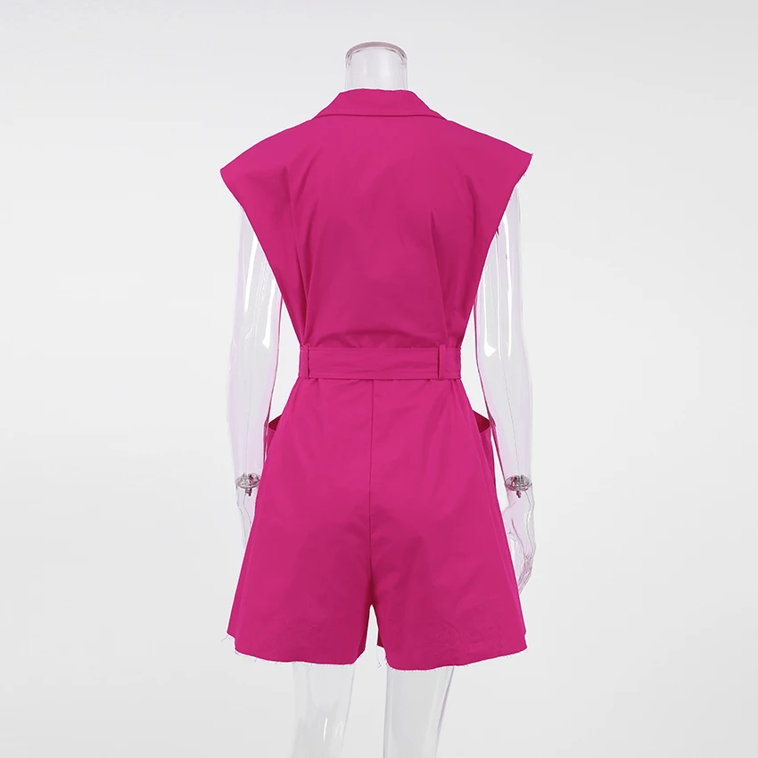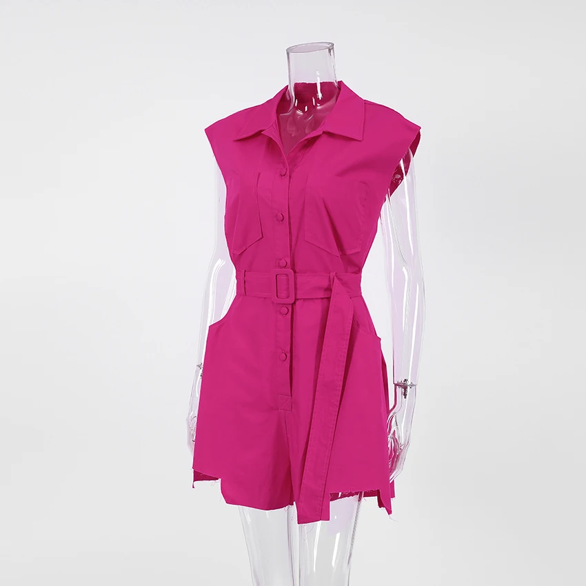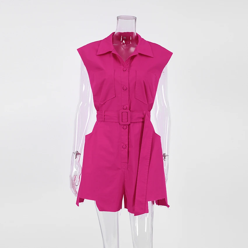 Bclout 2023 Button Fashion Casual Rompers Women Lapel Sashes Summer Street Overalls Cotton Summer Office Sleeveless Jumpsuits