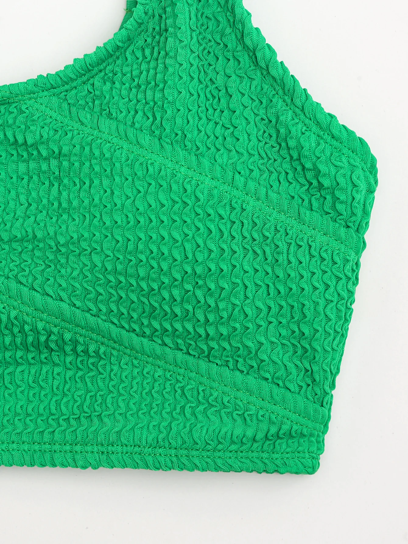 Bclout Bather Bathing Suit Swim Female Swimsuit Women Swimwear Two-pieces Bikini Set S - 2XL Wrinkled Crinkled High Waist Bikini